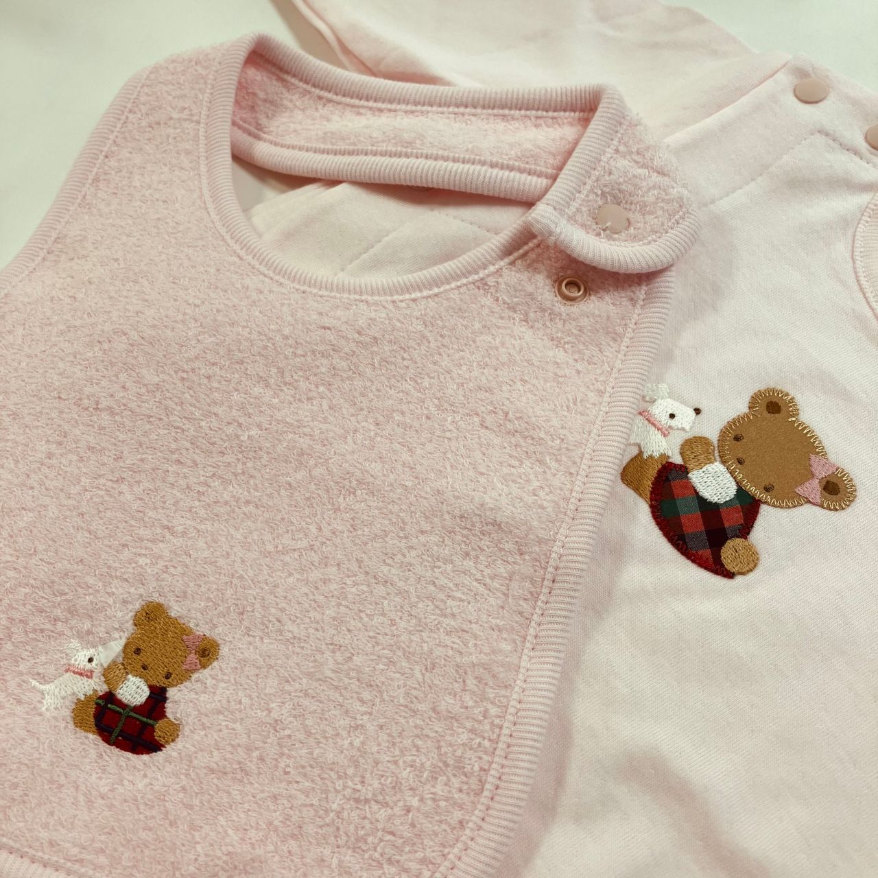 ツーウェイオール(秋冬~春)+ヨダレカケ+打合せ半袖肌着の3点セット。