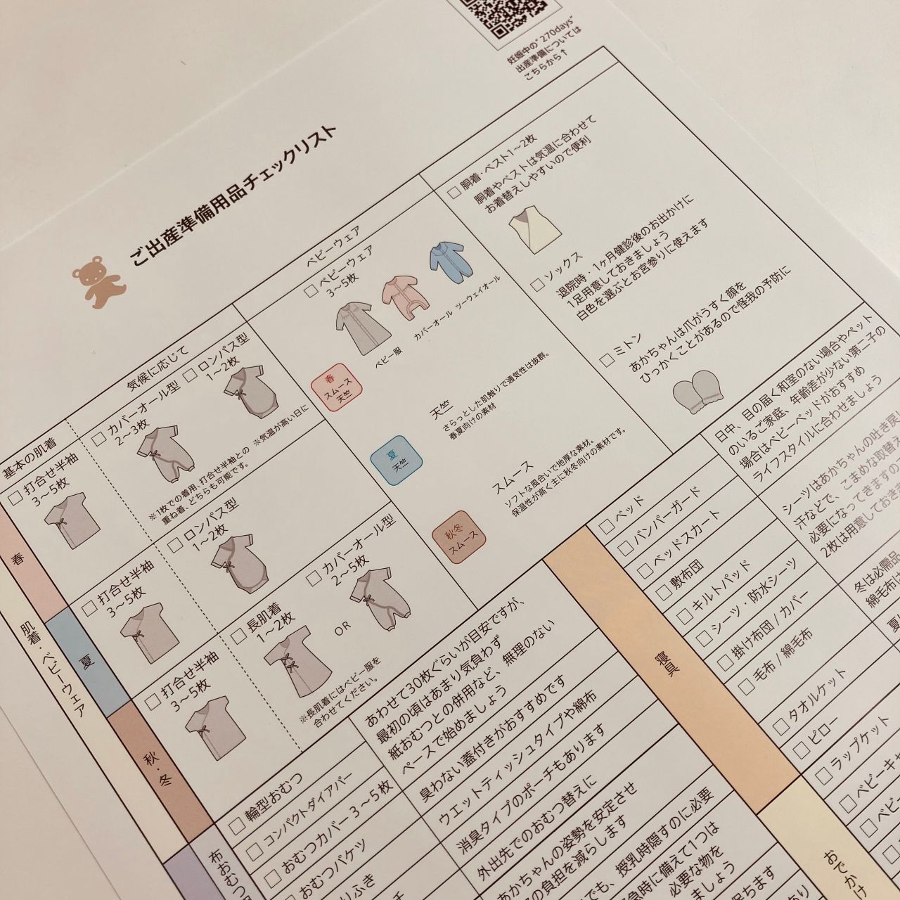 ご出産準備用品チェックリストを参考に・・・随時ご相談も承っております。
