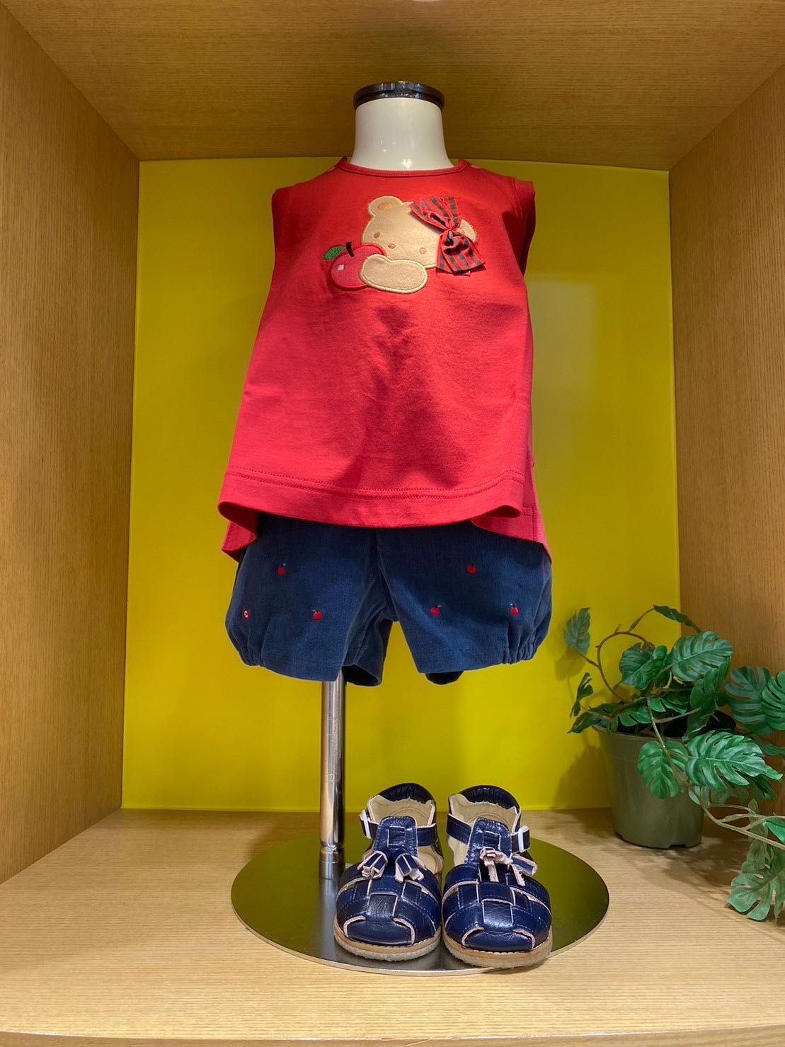 クマちゃんがファミリアチェックのビッグリボンを付けています。
