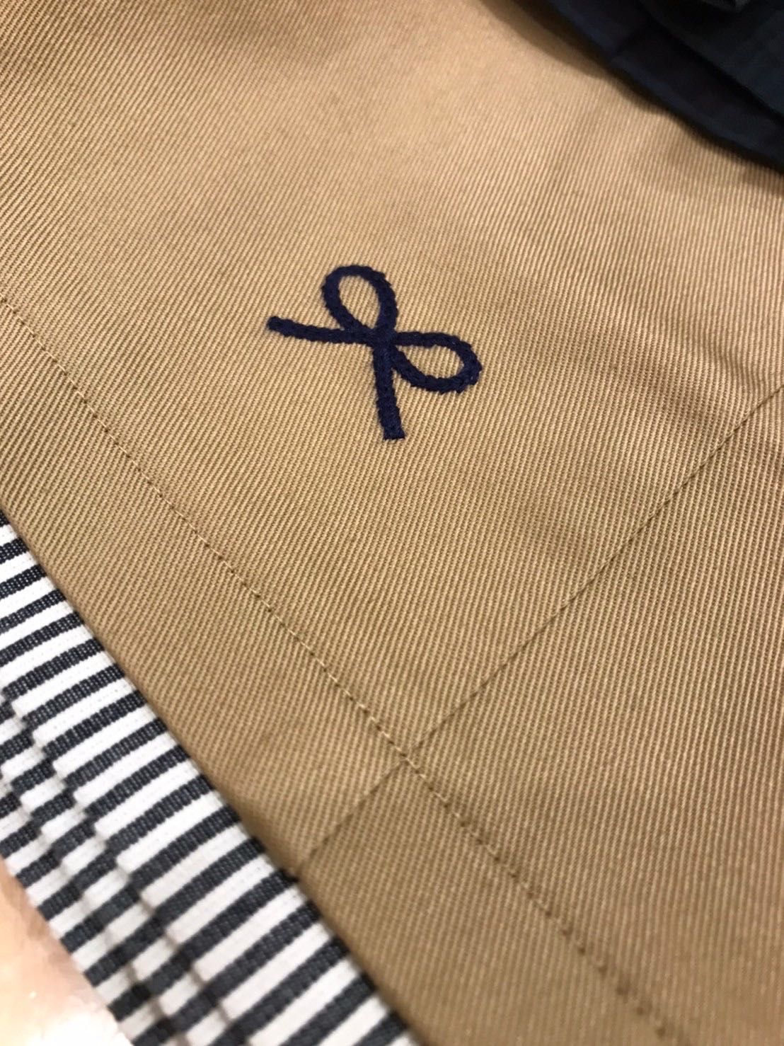 裾のストライプとリボン刺繍がポイントに。