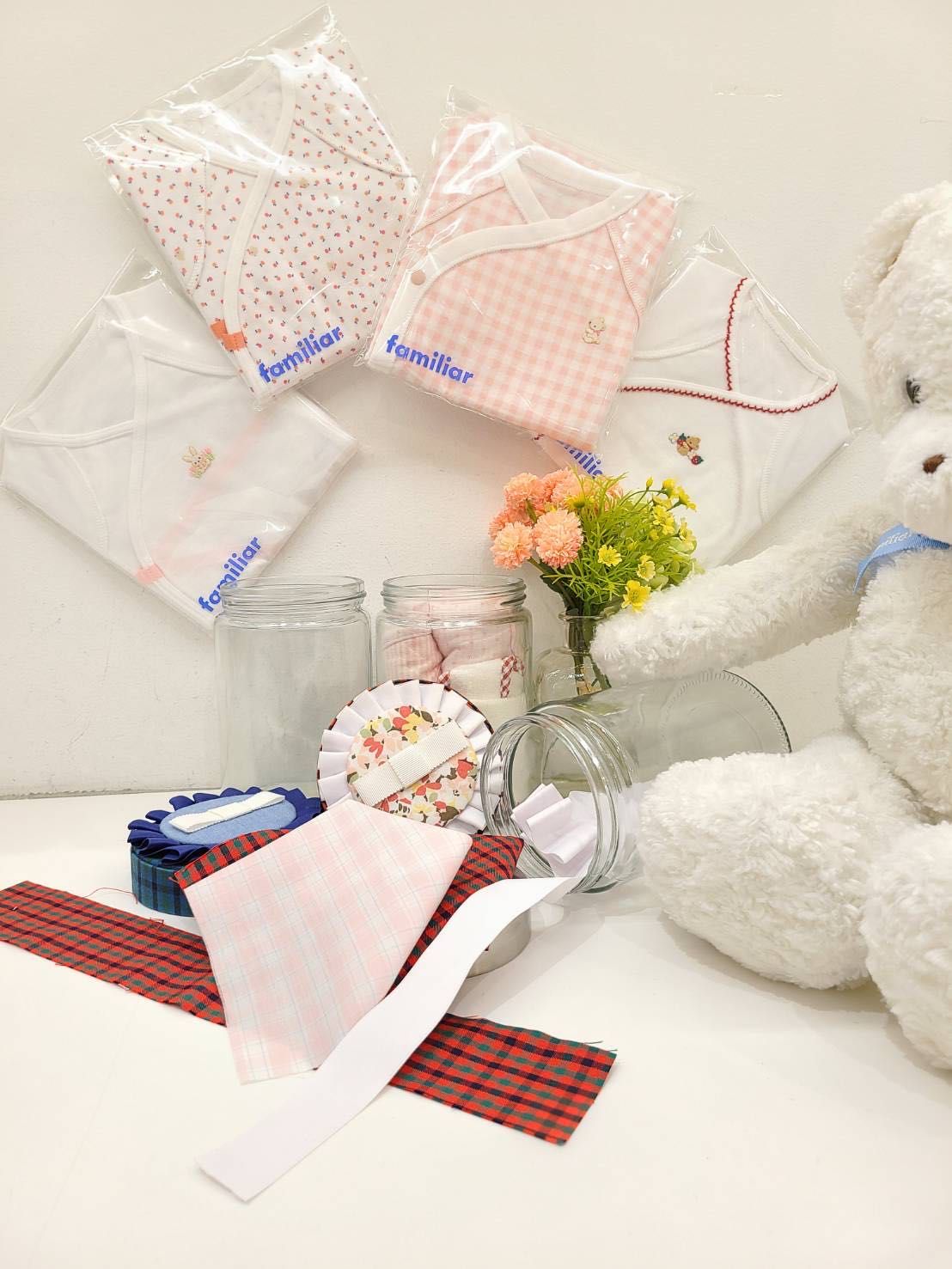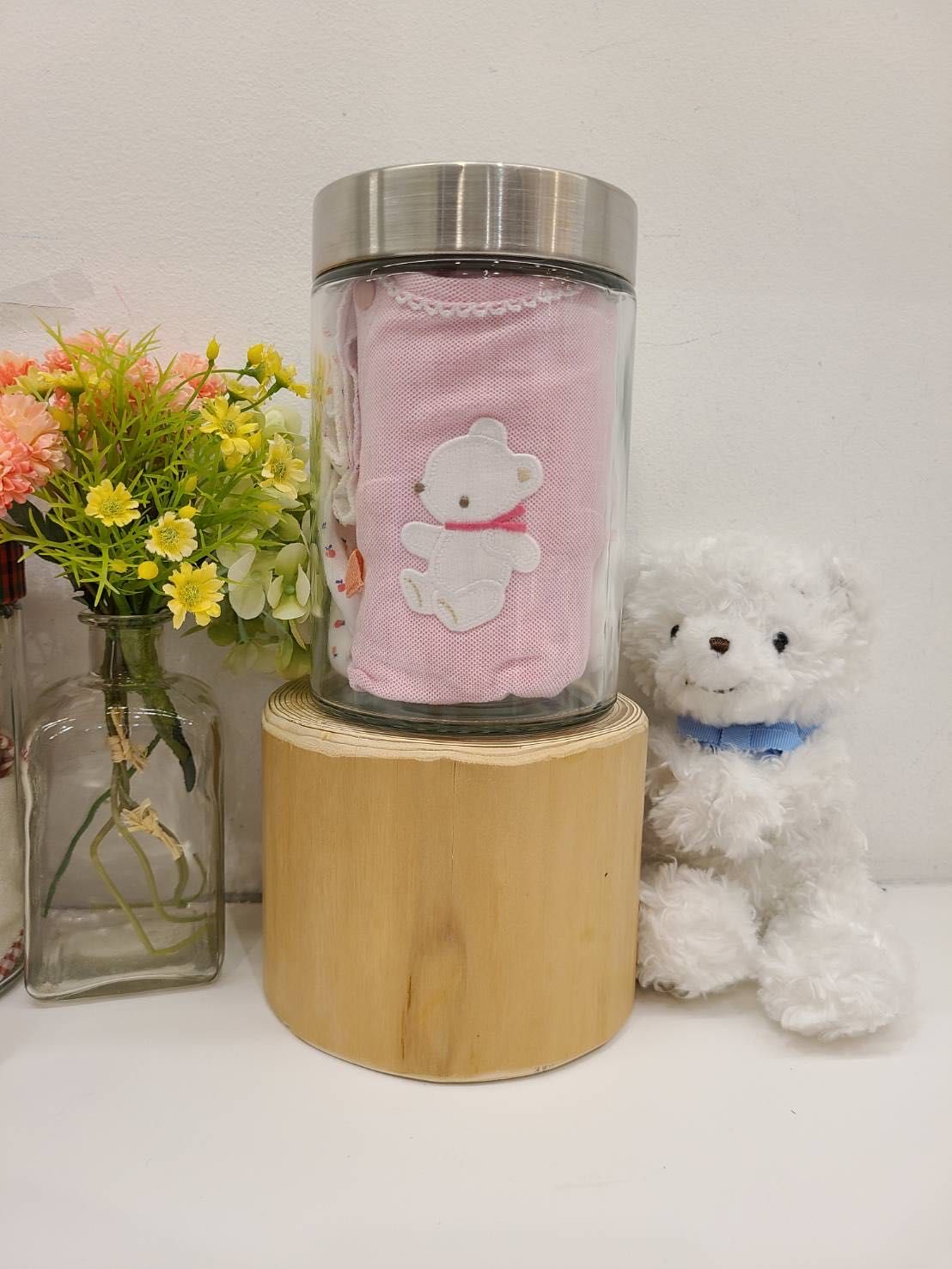 瓶にあかちゃんの時のロンパスやよだれかけを詰めて、思い出を素敵に残せます。