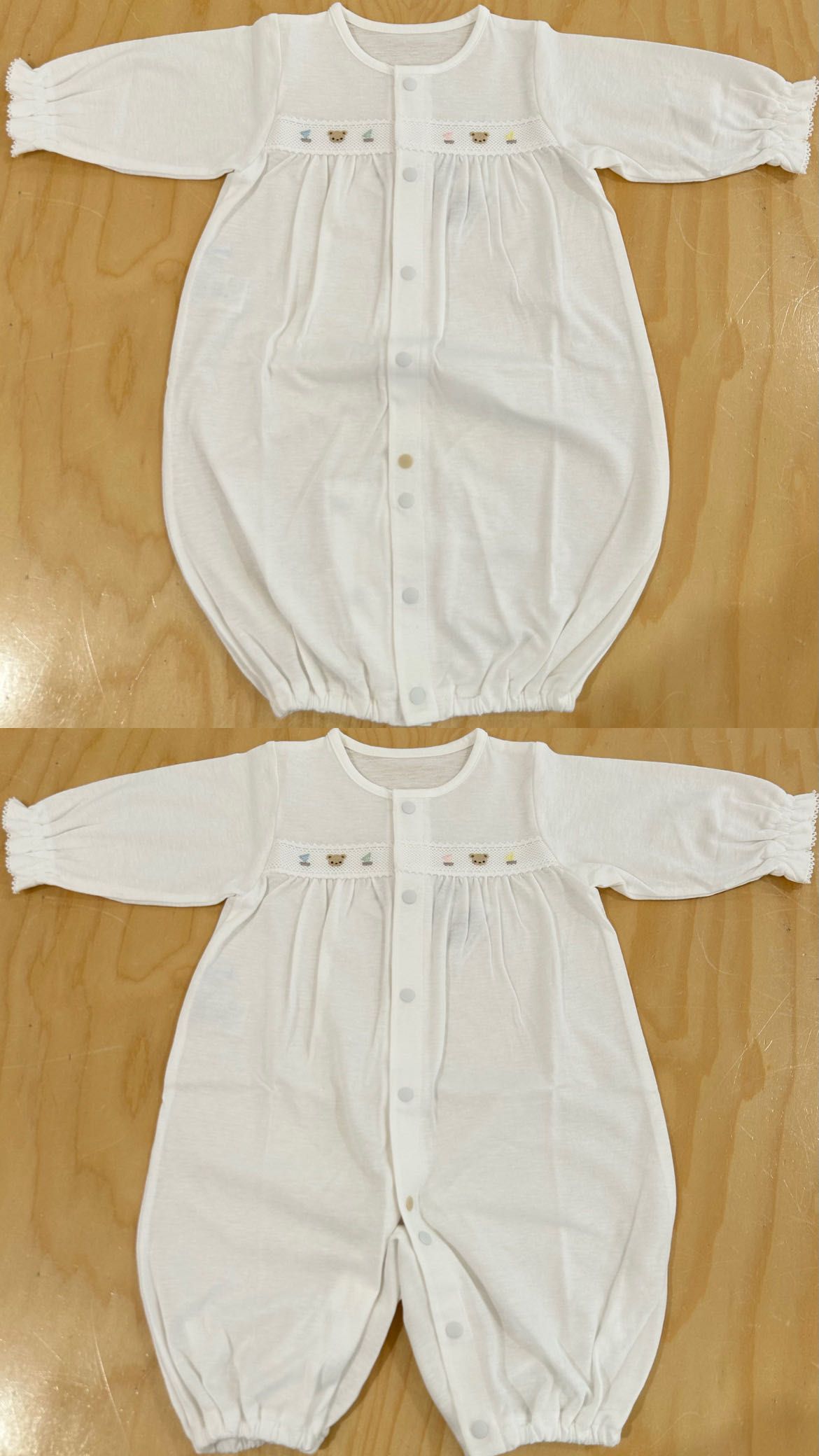 スナップを留めかえることによって、ドレス型としてもカバーオール型としてもご使用いただけます。