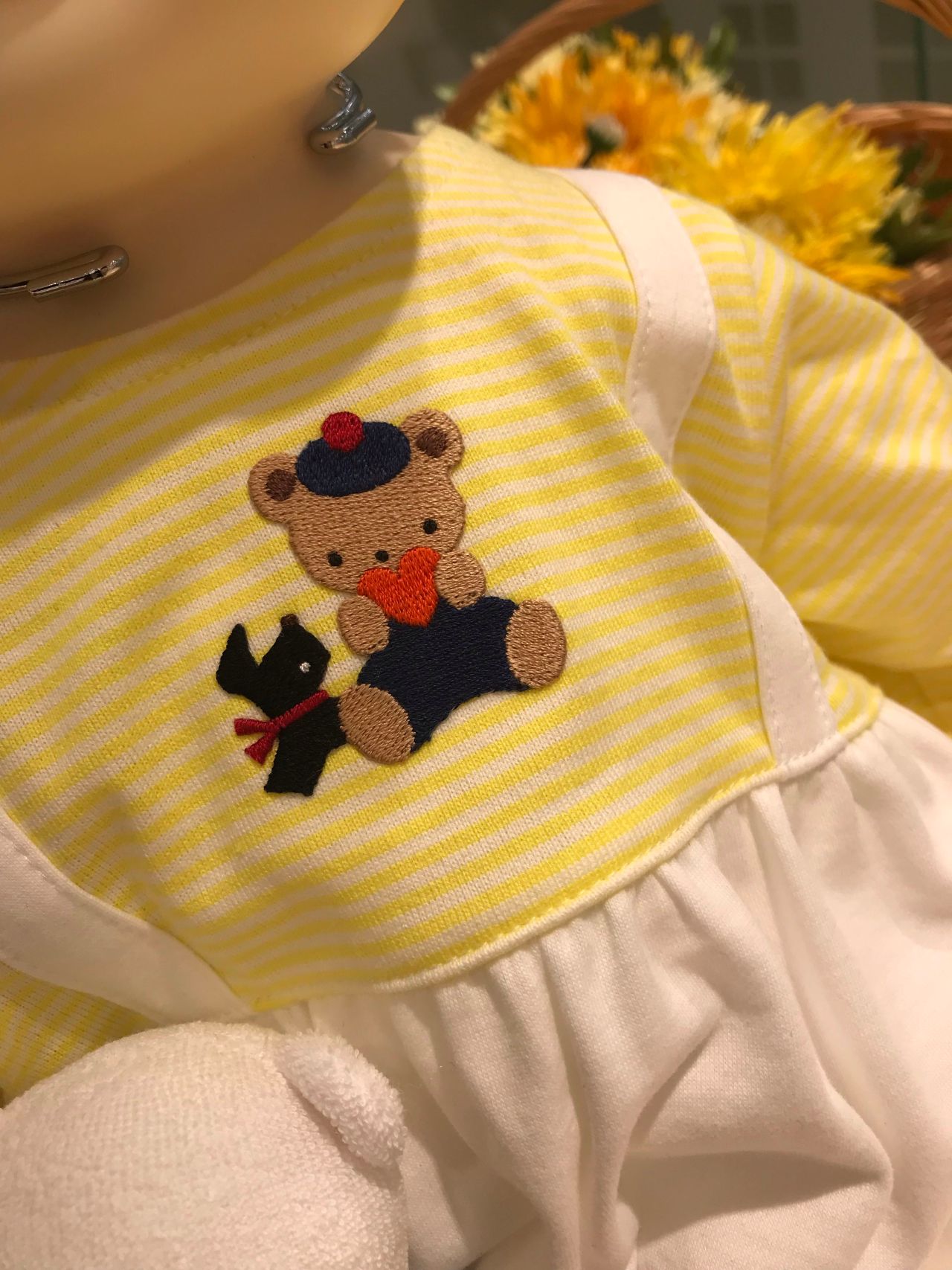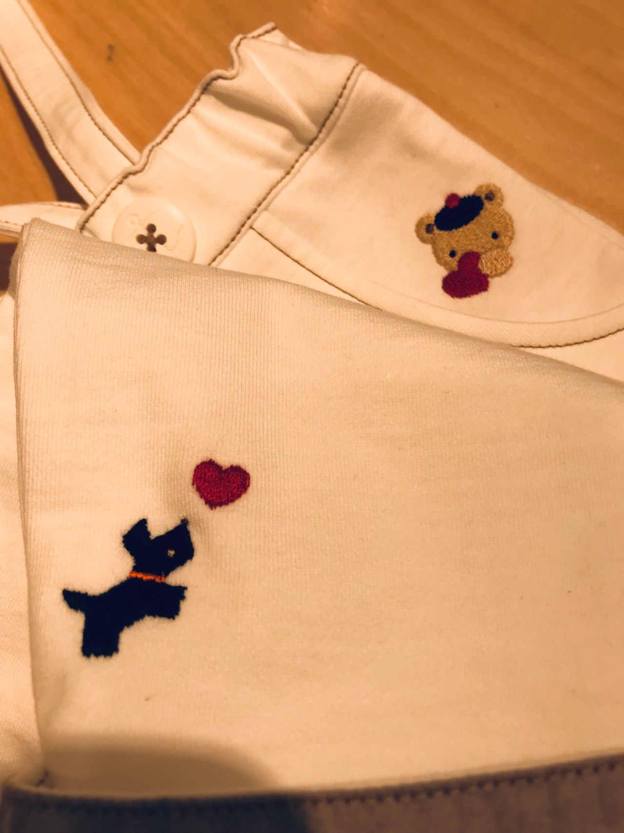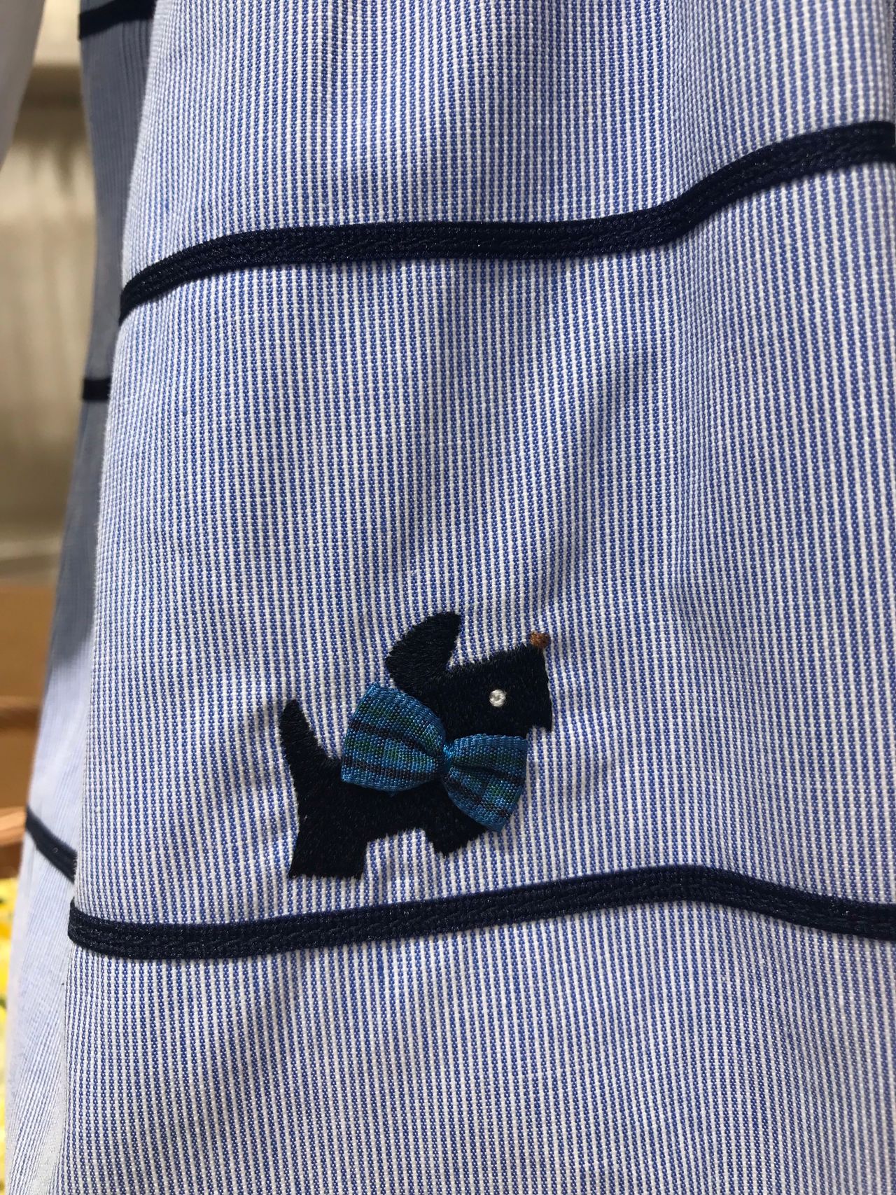 春らしいイエローのカーディガンにワンちゃんがたくさん!