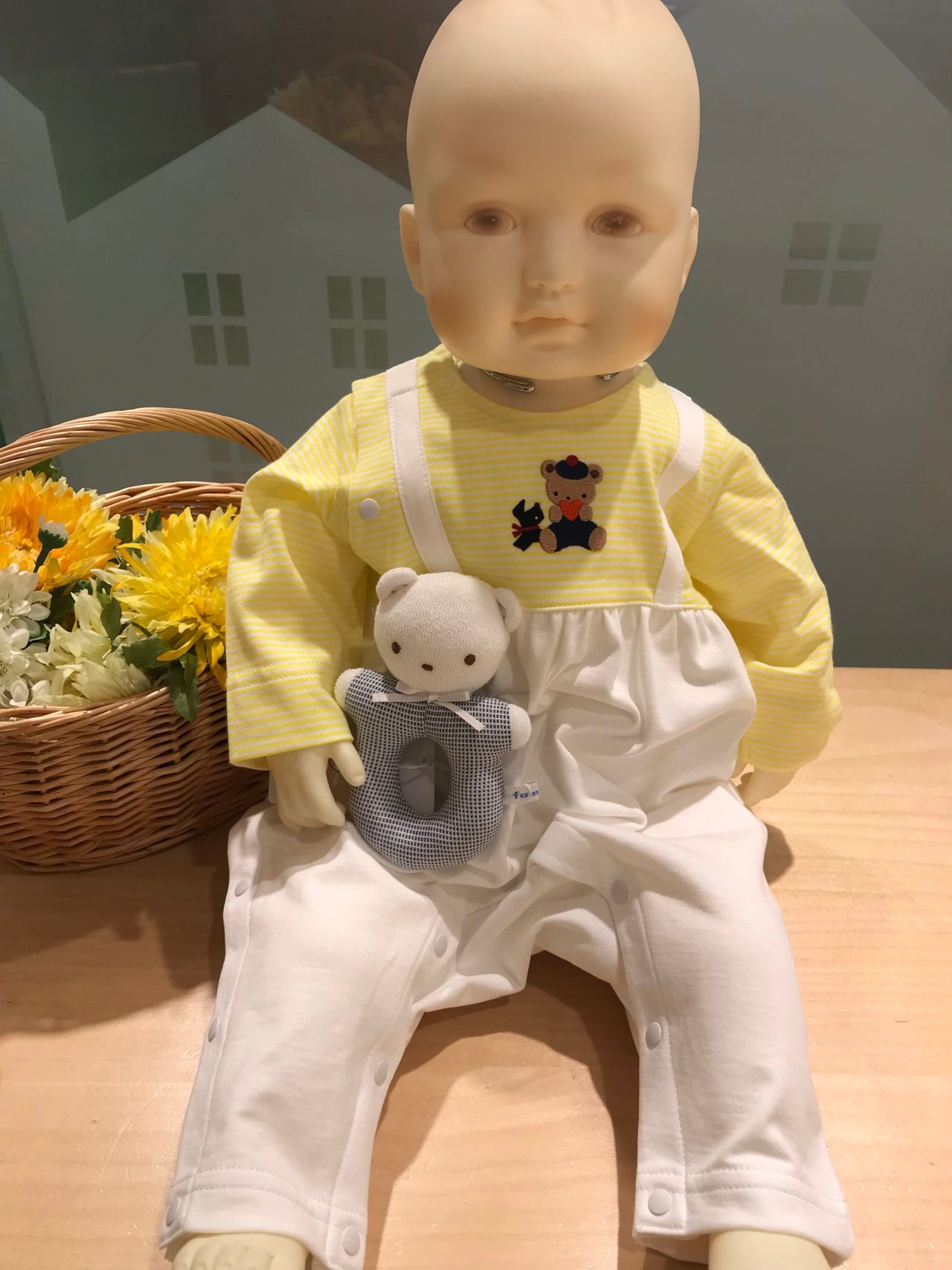 サロペットを着ている風の、春らしい色使いのカバーオール!