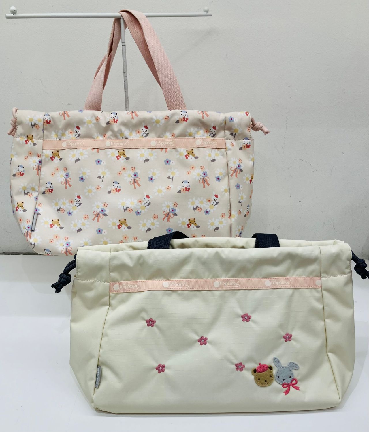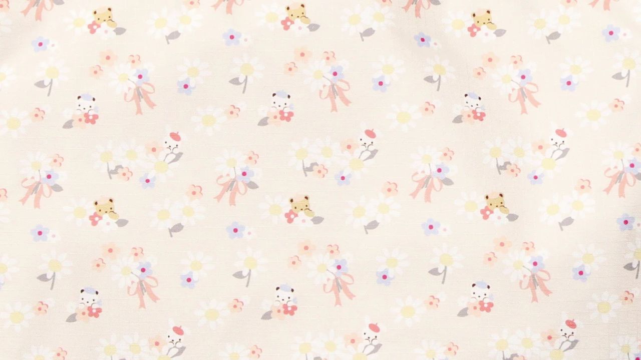 LeSportsac×familiarの第4弾コラボレーションのテーマは「フラワー」。今回のコラボレーションのためにお花とクマとウサギがデザインされた総柄プリントが作られました↓