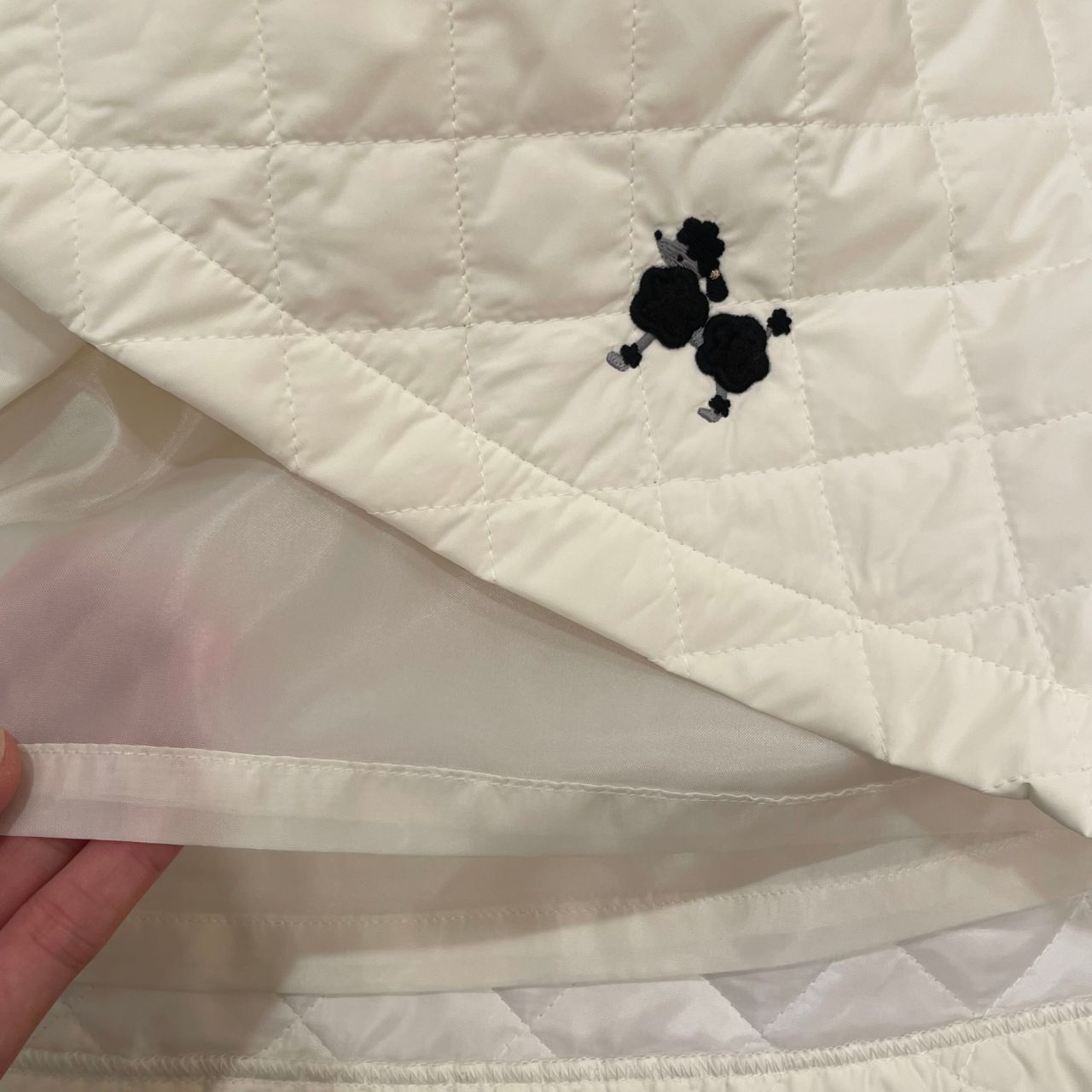 もこもこボア素材が可愛い♡ベージュのスカート。アップリケのテリアもボア素材です。
