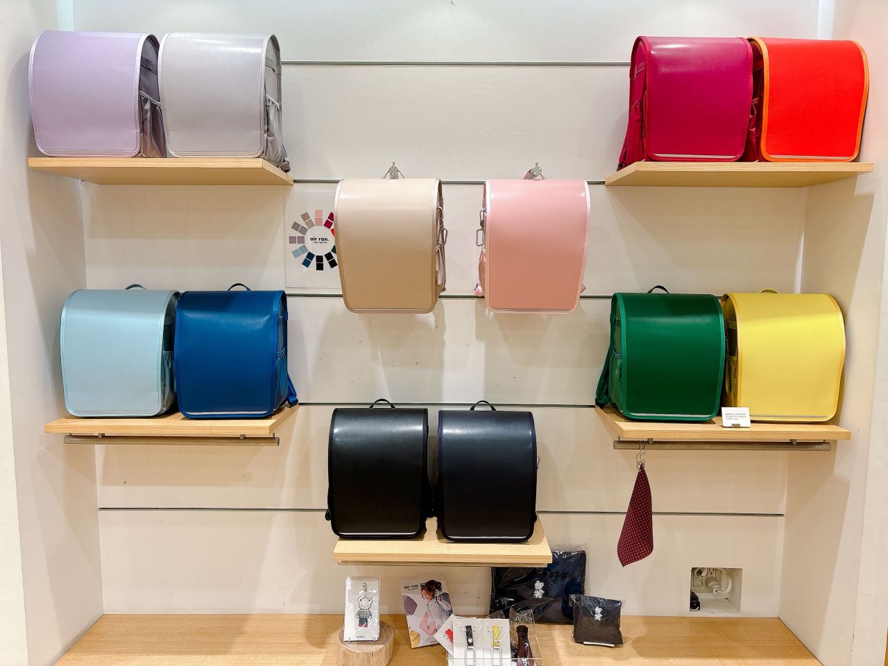 阪急うめだ本店では、牛革、クラリーノのランドセルに加え、大人気軽量タイプのair ran.サンプルを常時全色展示しております!