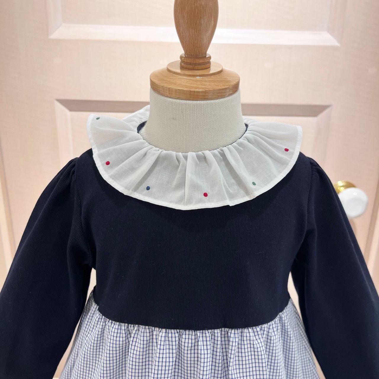 衿のフリルがお顔周りを華やかにみせてくれるワンピース♪