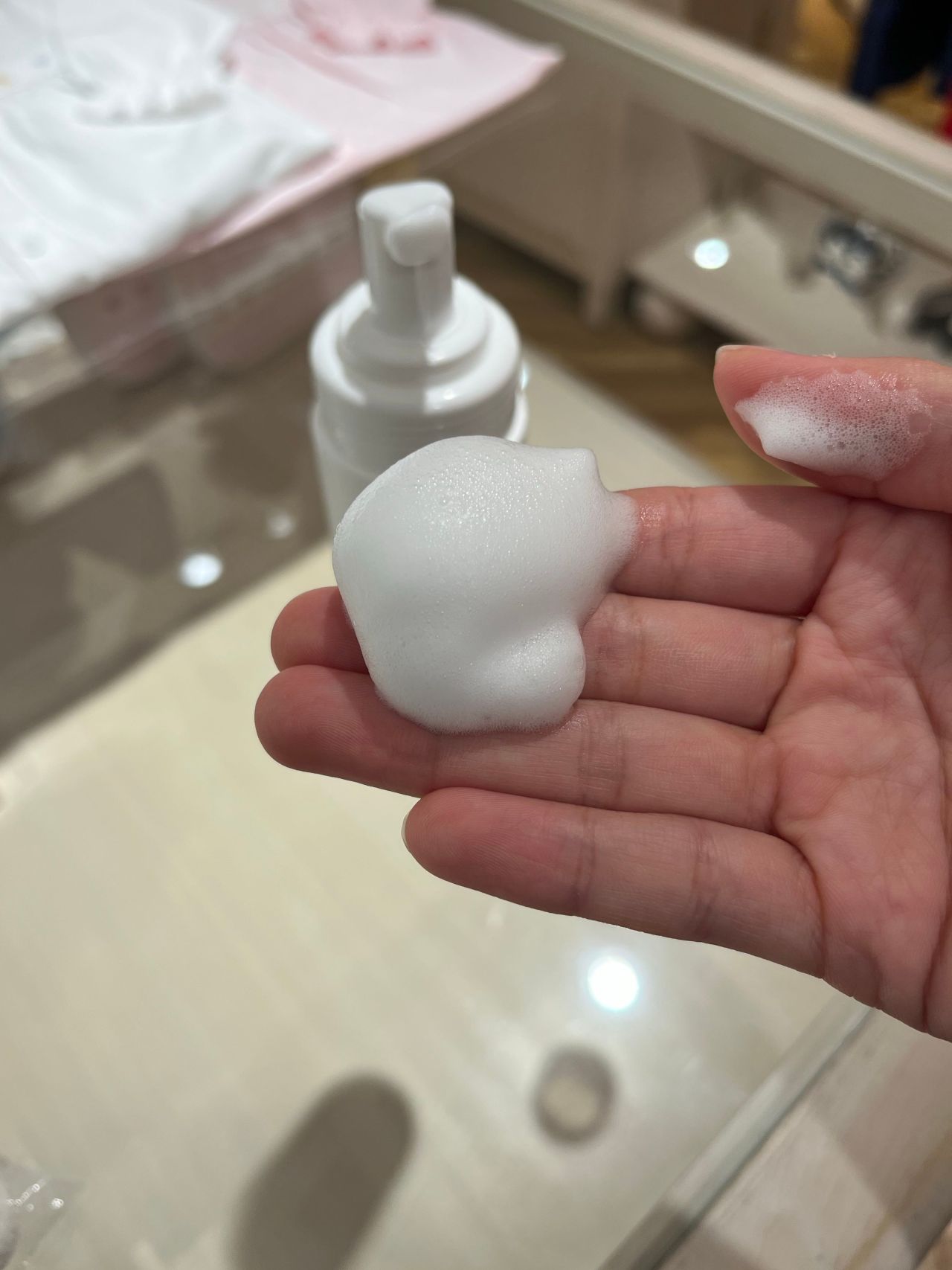 ベビーソープは片手でプッシュすることができるため、あかちゃんを支えながらでも簡単に泡を出せます!