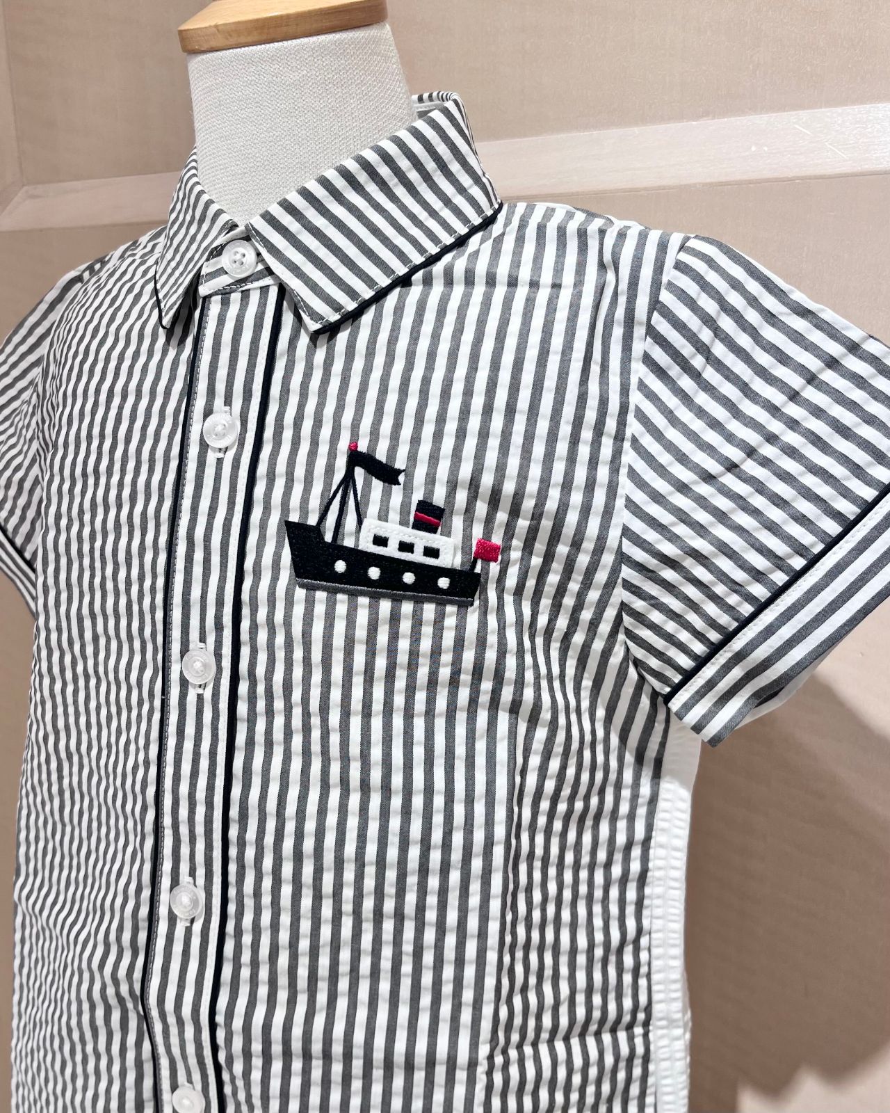 アートは少し大きめの船で、黒のストライプに合わせて、アップリケも黒にしています。