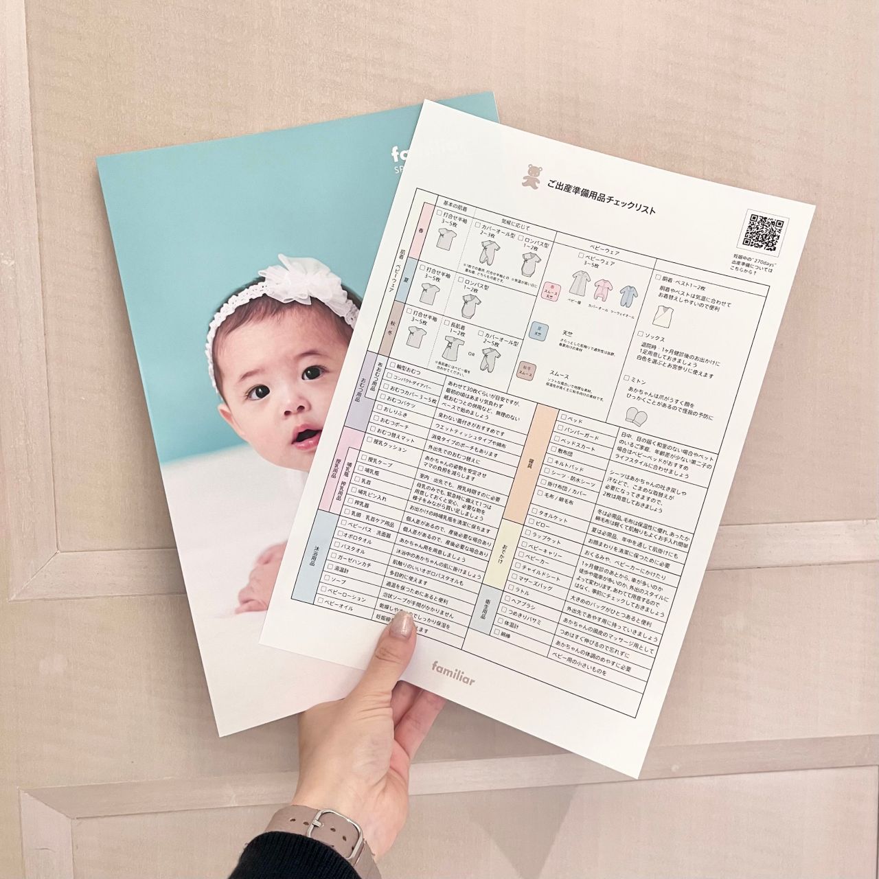 ファミリアではご来店いただいたお客様にご出産準備用品チェックリストをお渡ししております。