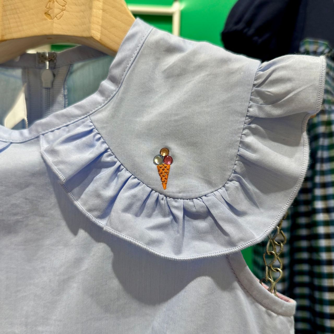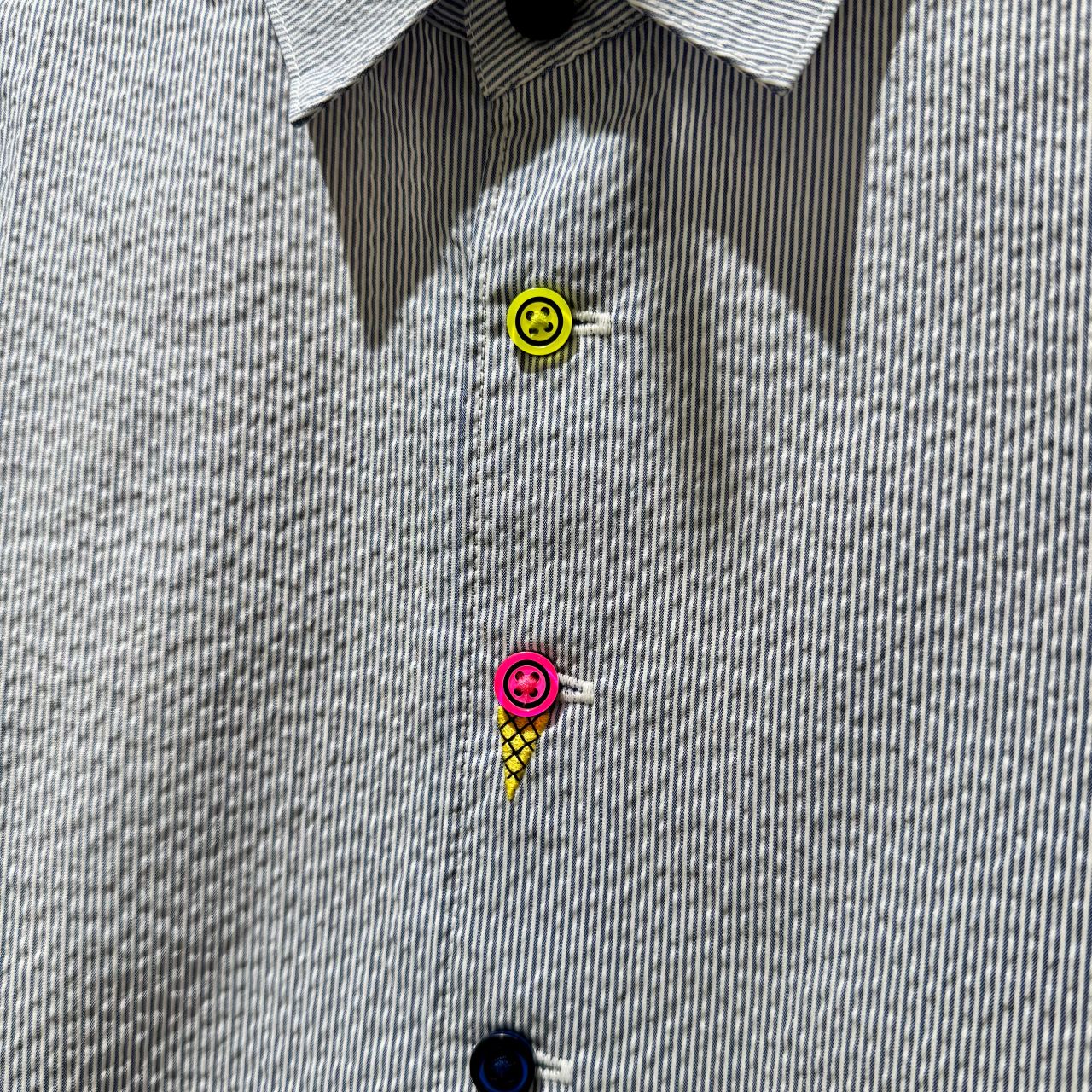 ボタンホール側にコーンの刺繡がついており、ボタンをとめるとアイスクリームになります!