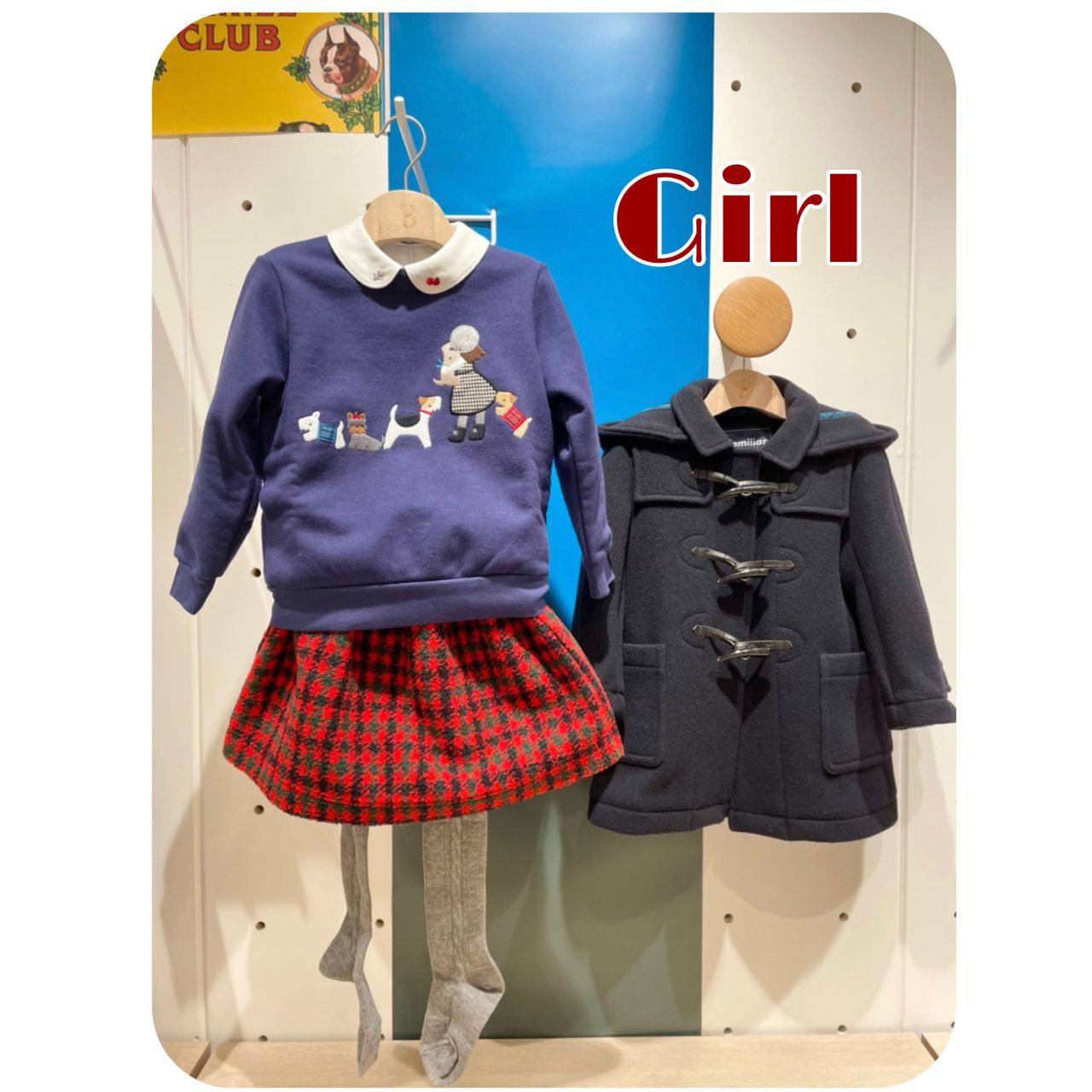 ファミリアチェックのスカートはボアであたたかい素材なので、今の時期にぴったりなアイテムです。
