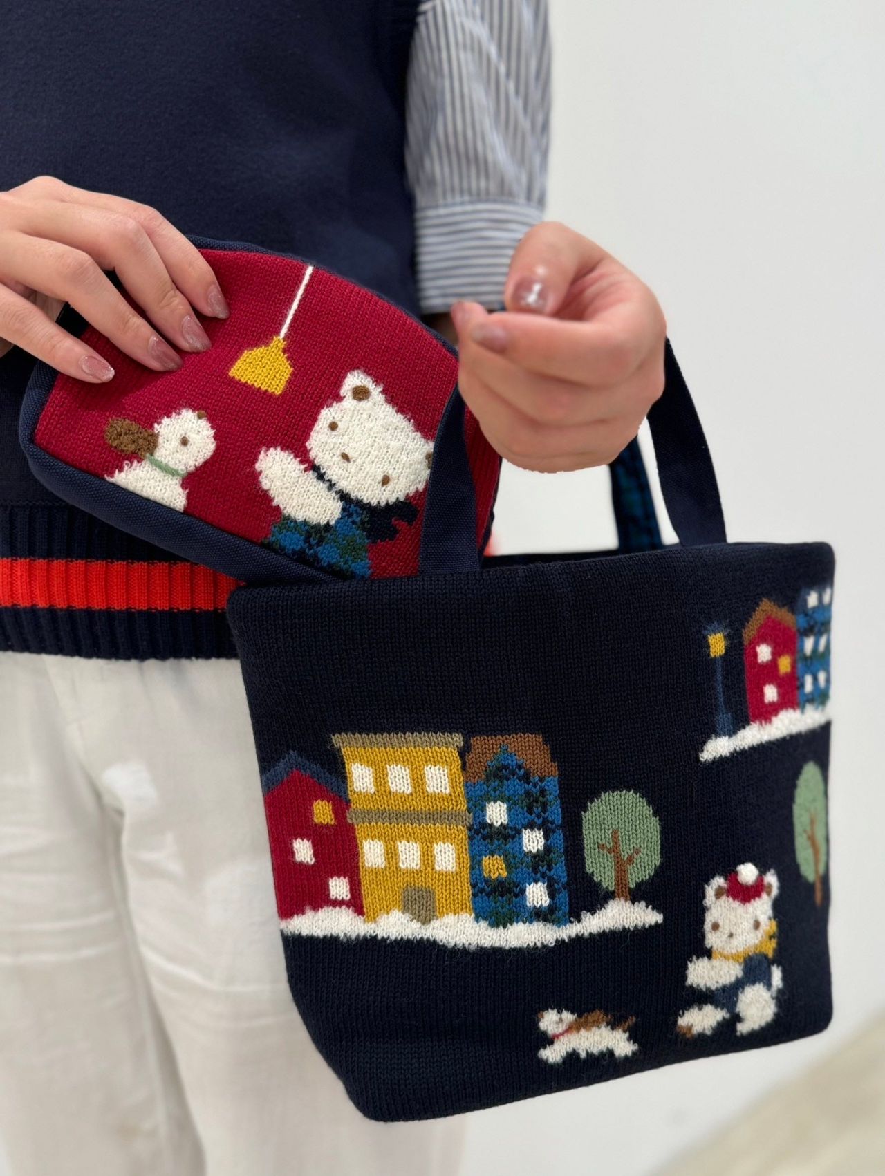 北欧のインテリアをイメージしたインターシャ編みのポーチです!