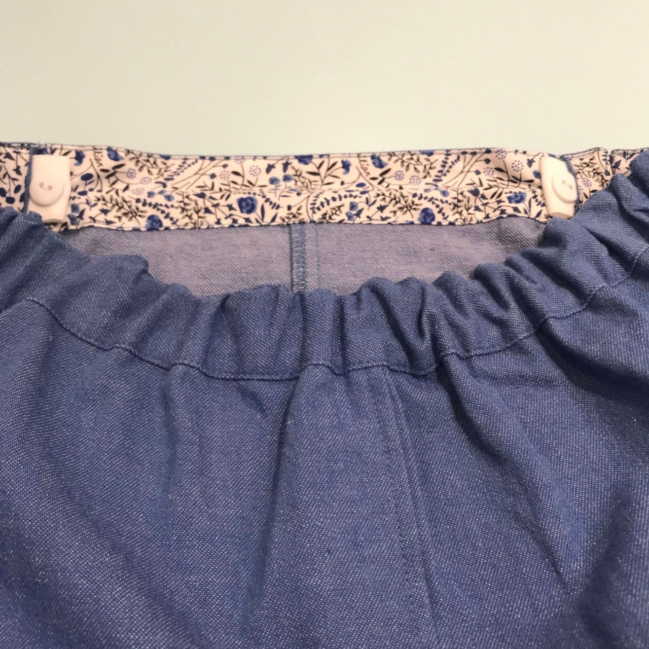 ウエストは後ろがゴム仕様になっており、アジャスター付きです。