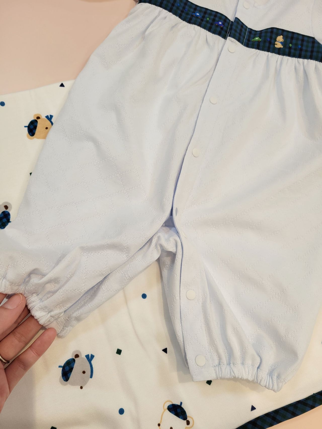 内容はツーウェイオール・ロンパス型肌着・ヨダレかけの3点セット!