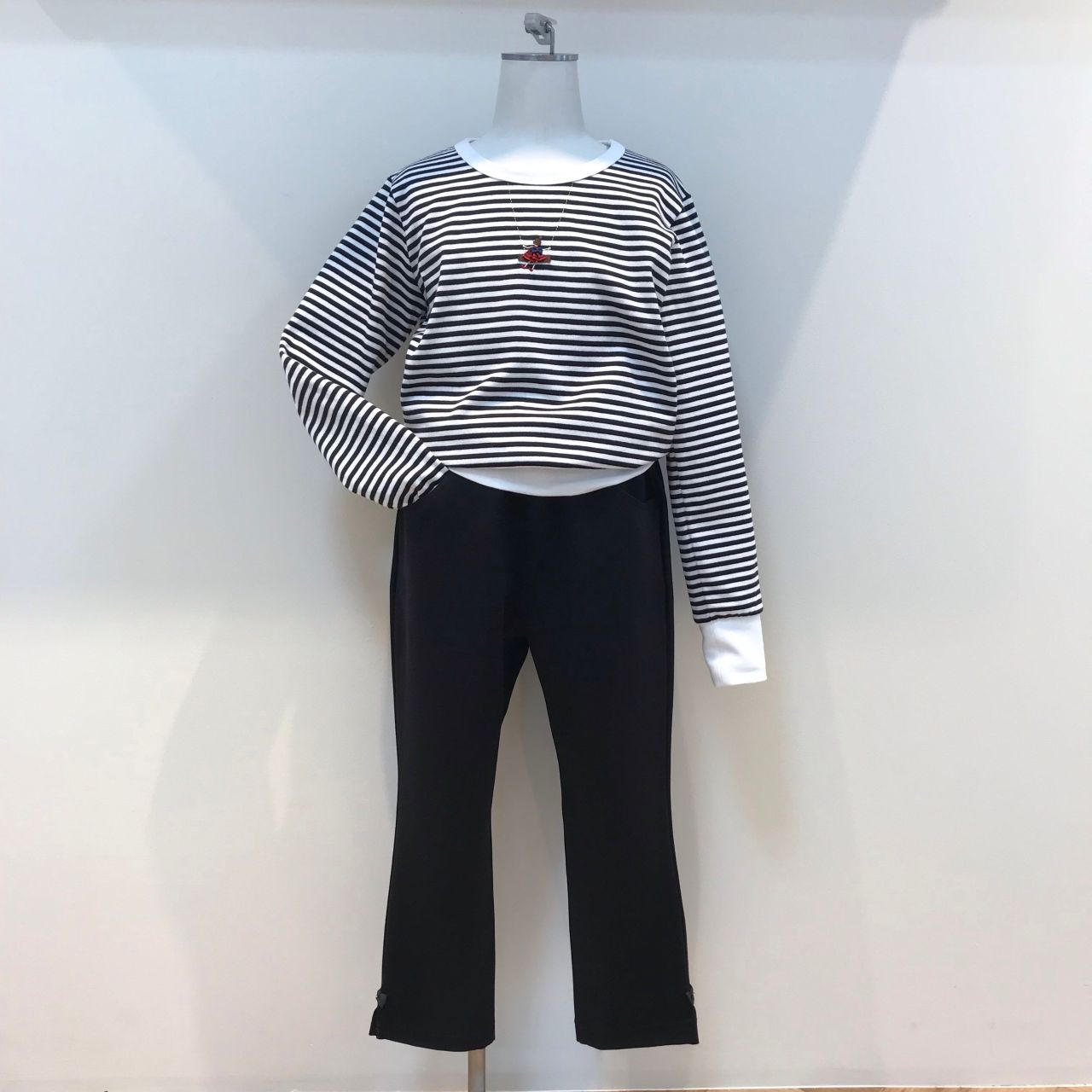 細身のシルエットで丈が少し短め、足首が見えるので軽やかな印象です