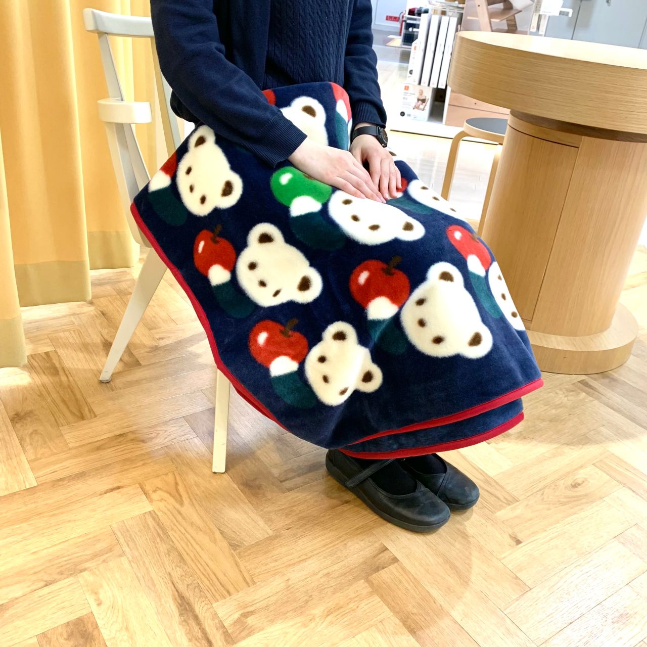 リンゴを持ったファミちゃんのデザインがかわいい、厚手のブランケットです。