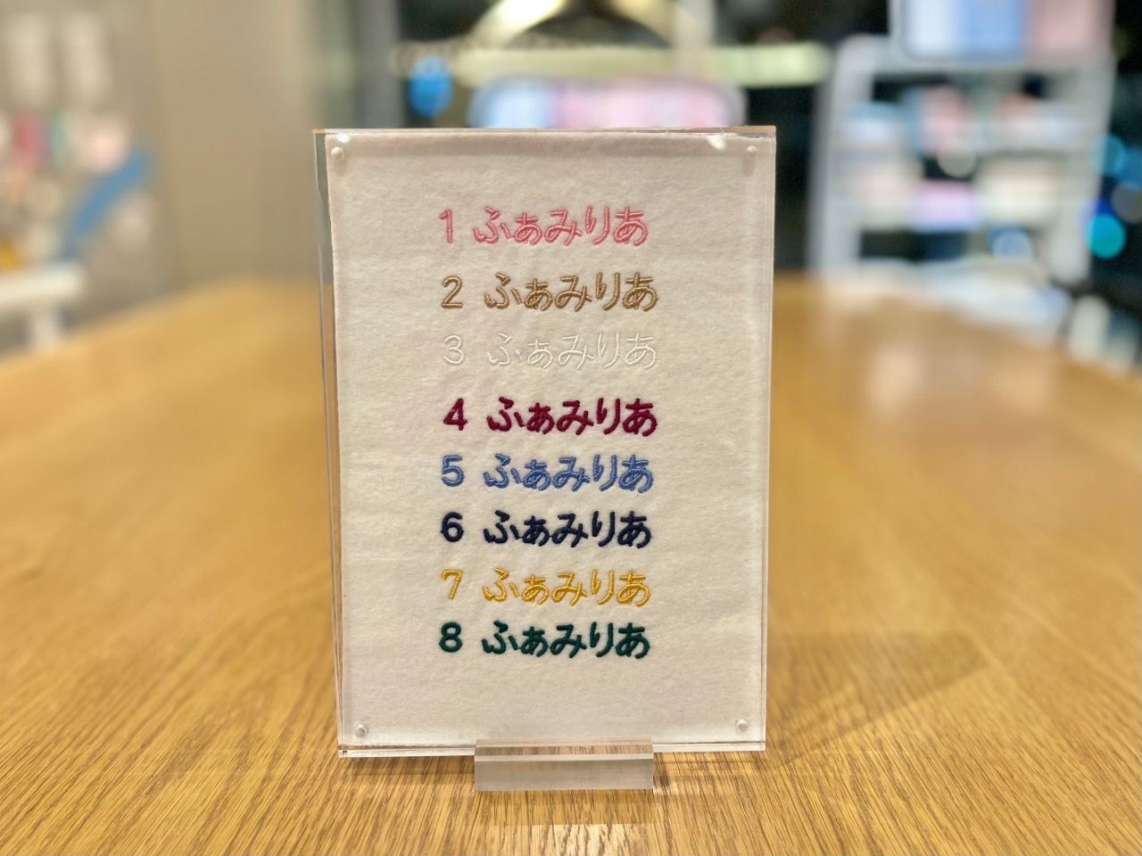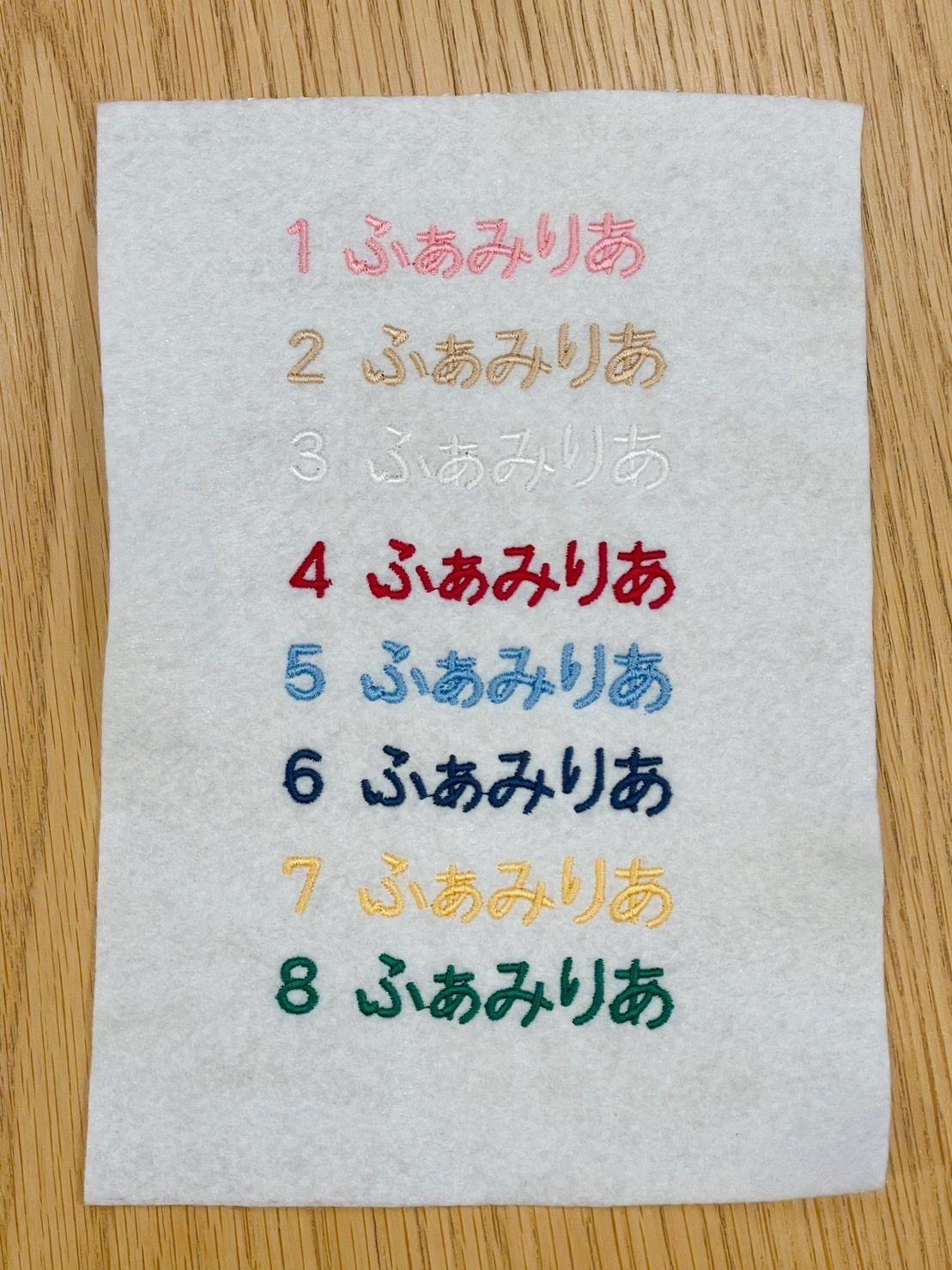 字体は筆記体・ブロック体・ひらがなの3種類、糸色は8色からお選びいただけます!