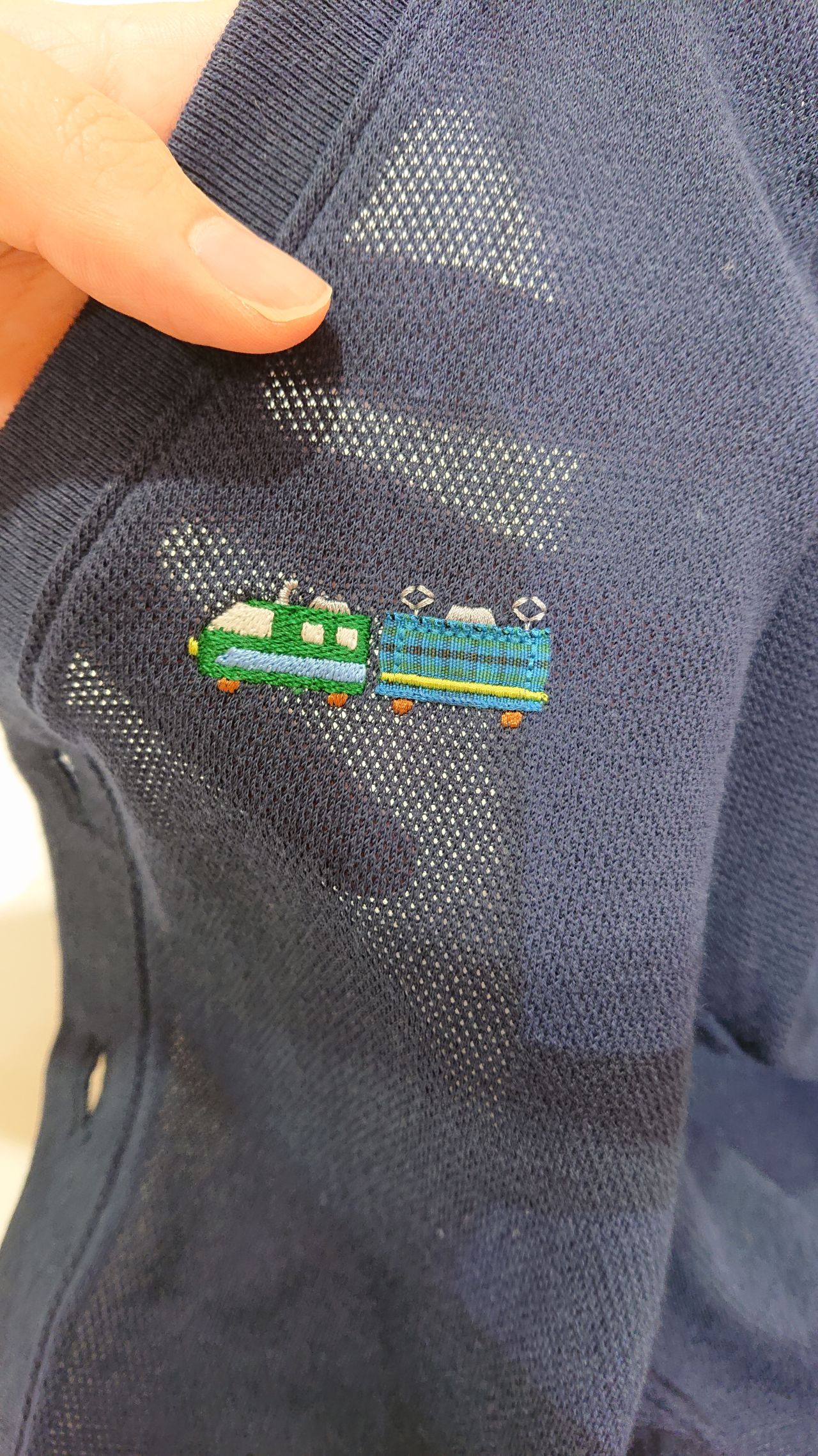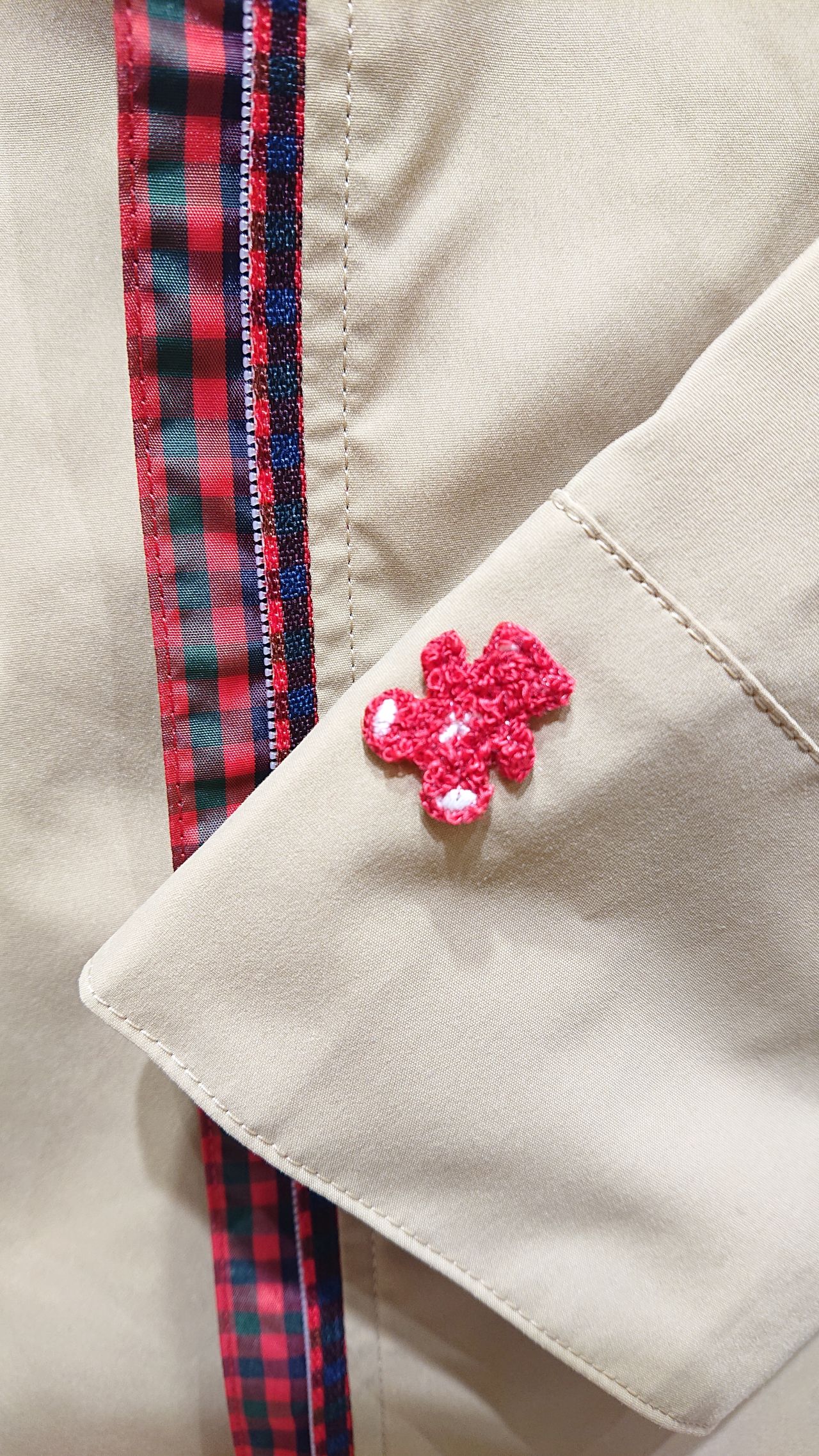左袖には立体感のある赤いクマちゃんのワッペン付きです。
