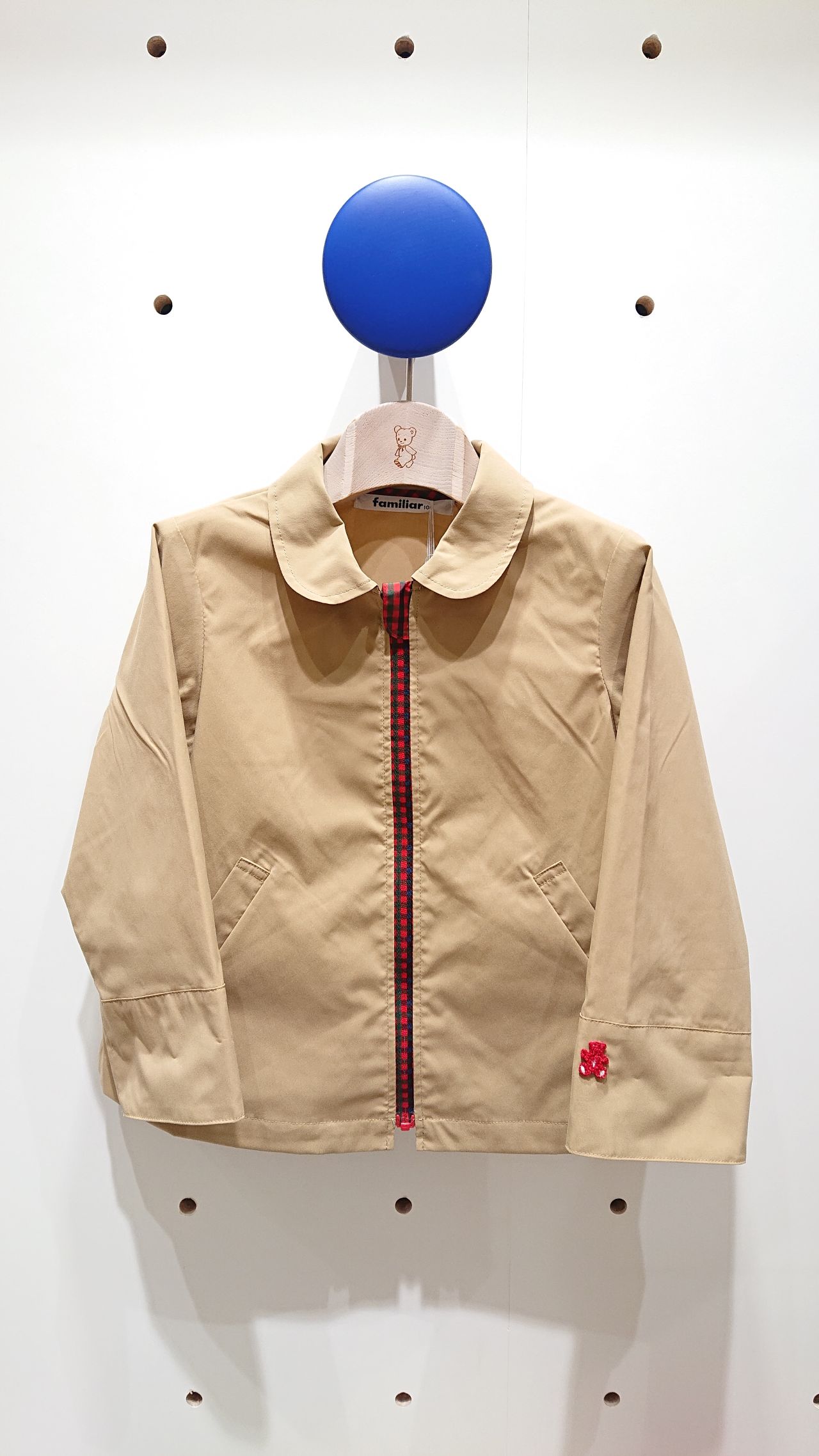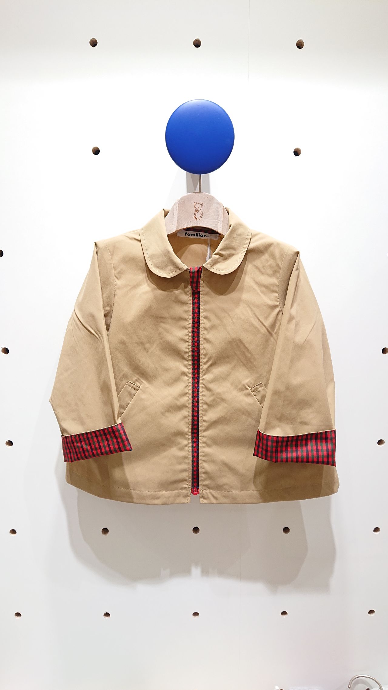 前開きの見返し・袖口裏にもファミリアチェックを使用しているので、ファスナーを開けても袖口を折っても可愛く着こなせます。