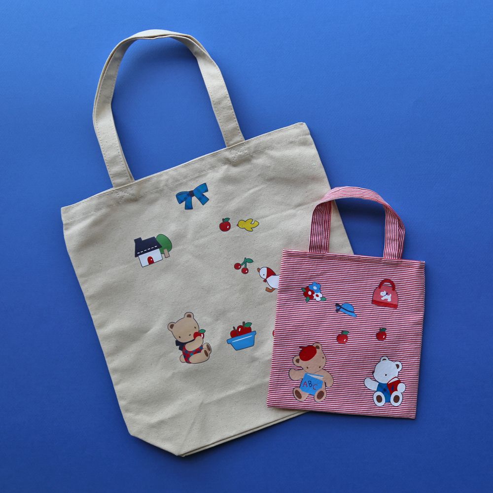 今回は粗品のエコバッグと、特に柄のない綿のミニバッグで作ってみました。