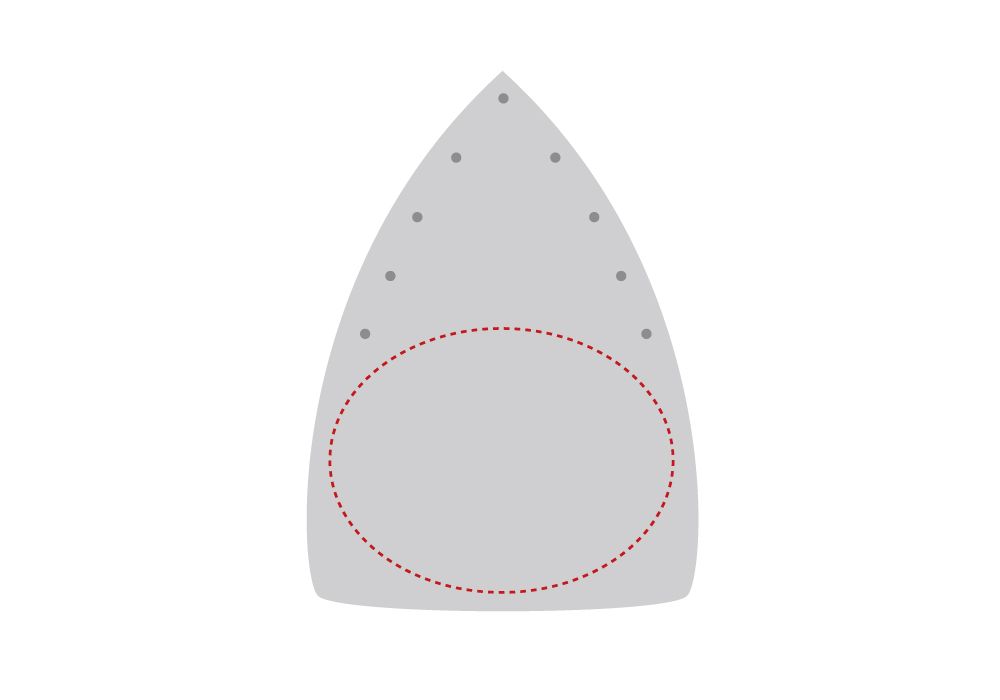 スチームの穴の部分からはアイロンの圧がかからないので、アイロンのお腹部分(図の点線部分)で