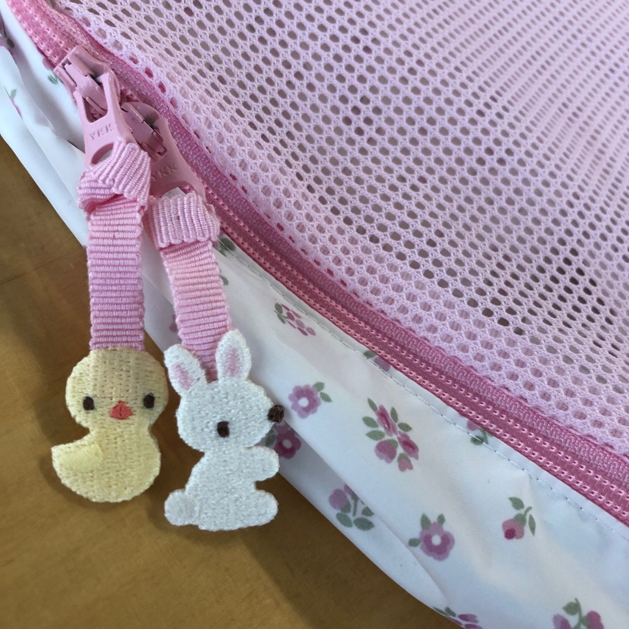 本体はお花の総柄ですが、ファスナーにいました!