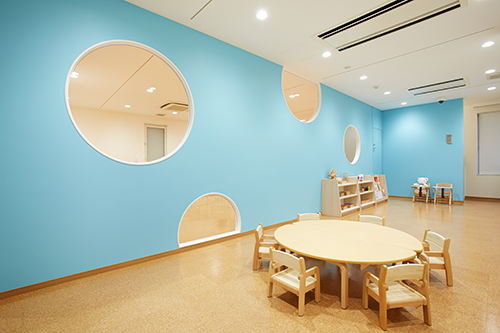 一番の特色は、隣のお部屋が見える丸い窓があること!
