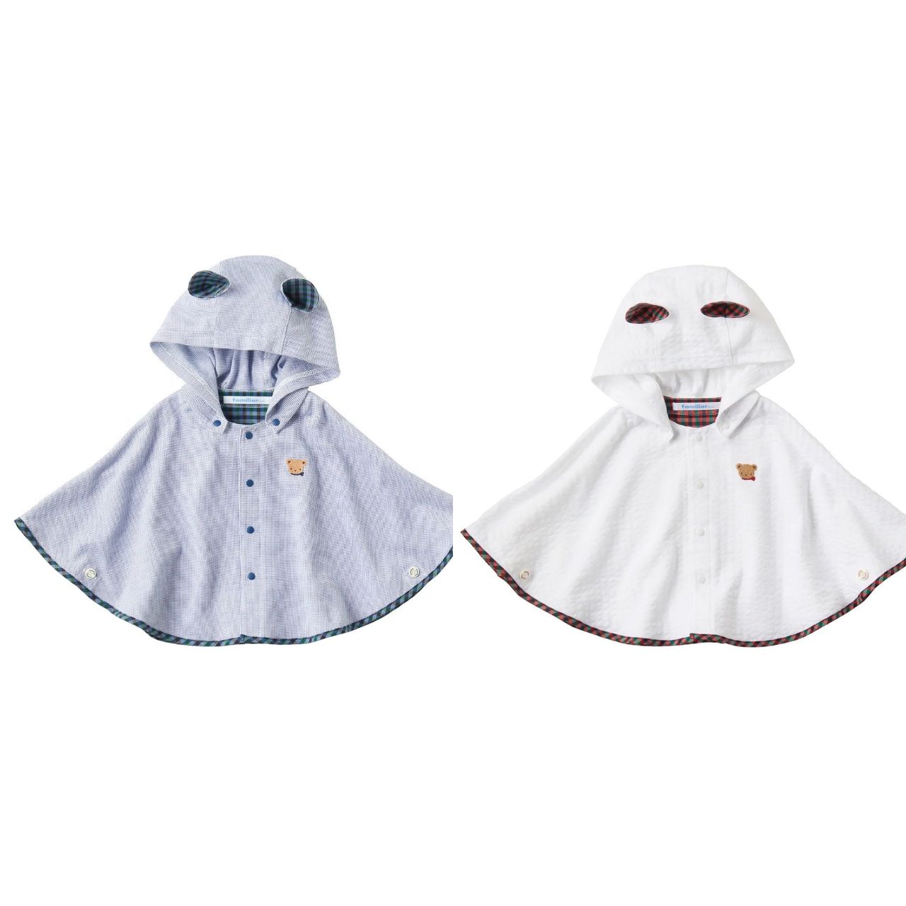 それぞれシャンブレー調青系・赤系ファミリアチェックになっていています!