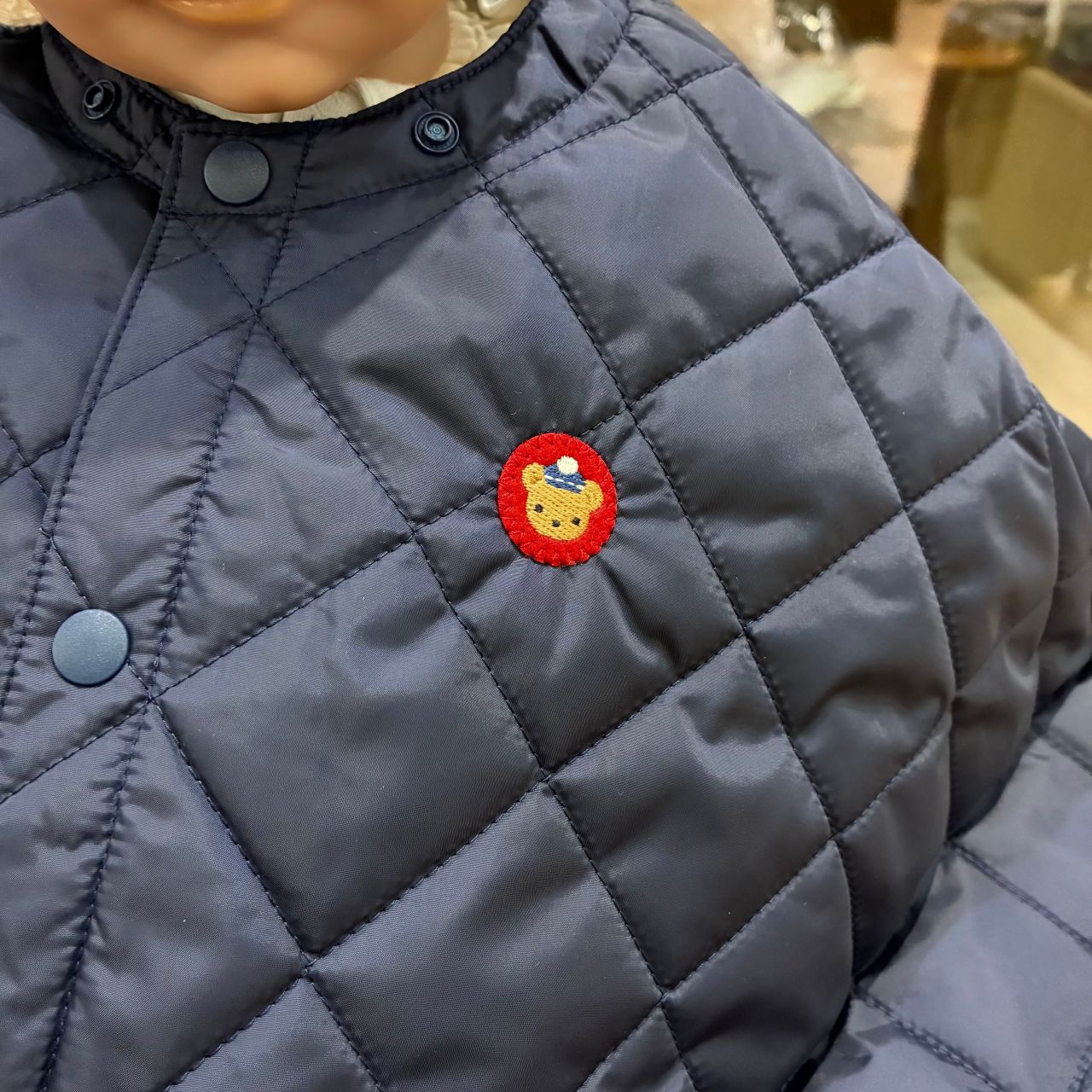 胸元にはくまちゃんのアップリケがワンポイント!