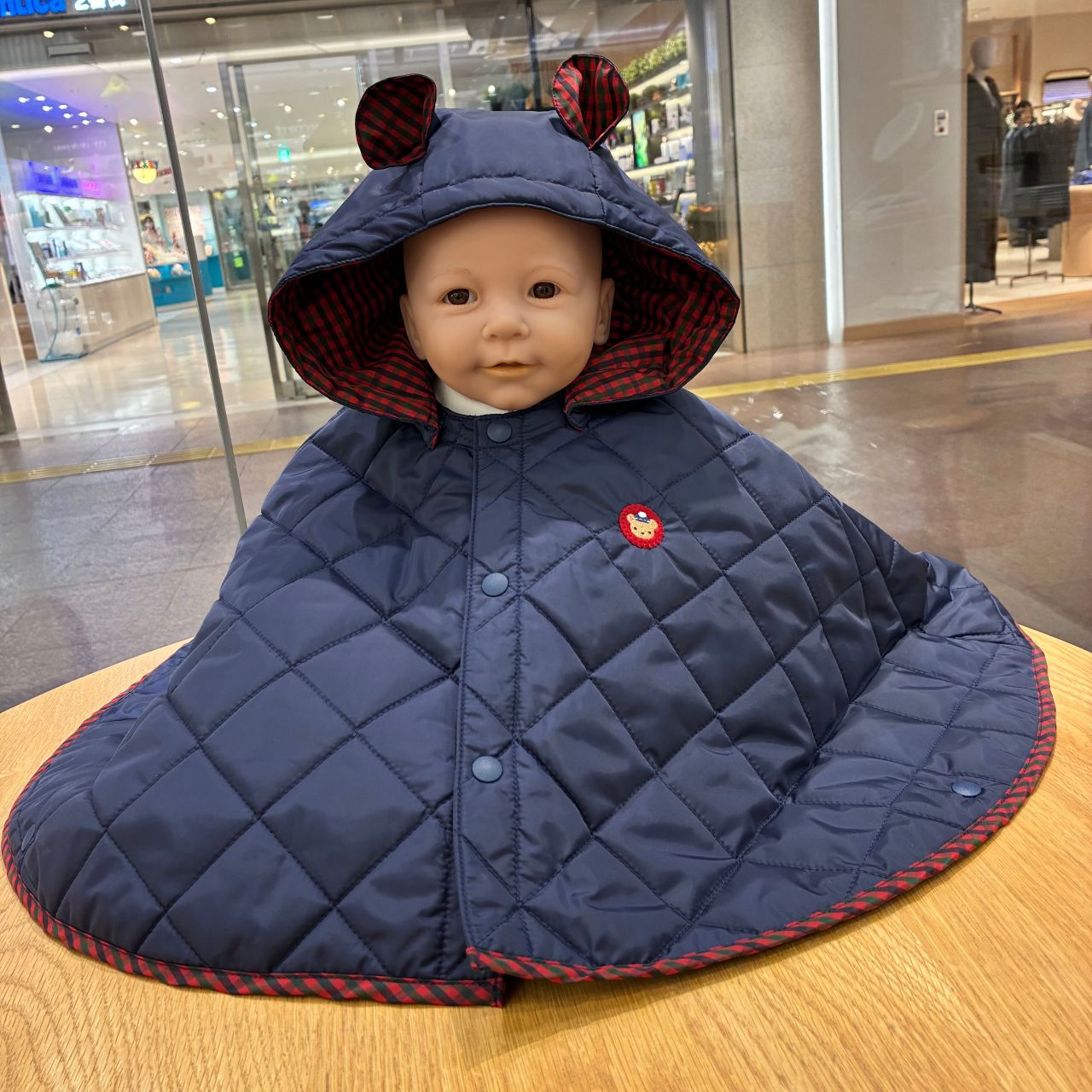 裾、フード裏、耳の内側には