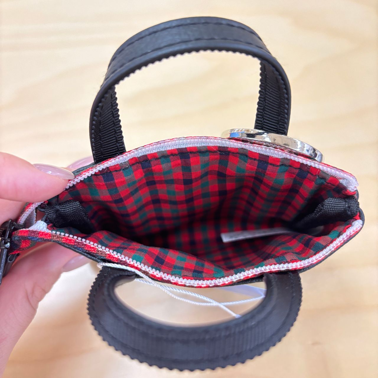 内側も赤系ファミリアチェックになっていて、