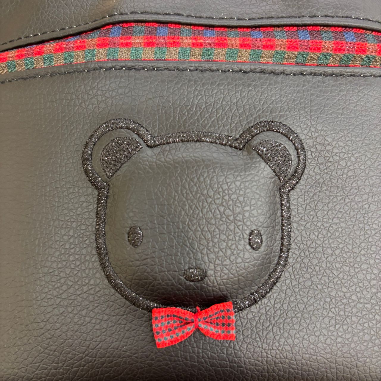 ブラックのラメ糸でさりげなく表現したクマちゃんがポイントになっています♡