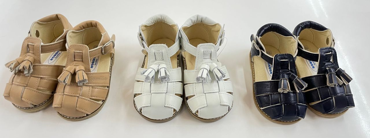 つま先の編み込みデザインとタッセルがポイントになった可愛らしいこちらのベビーサンダルは