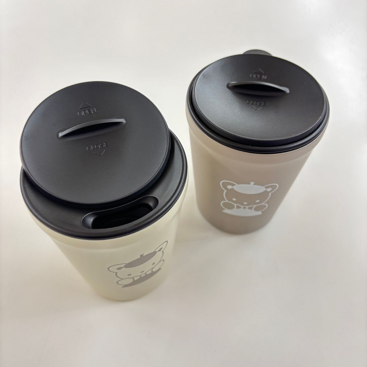 飲み口はスライド式で、蓋を外さずに飲んでいただけます。