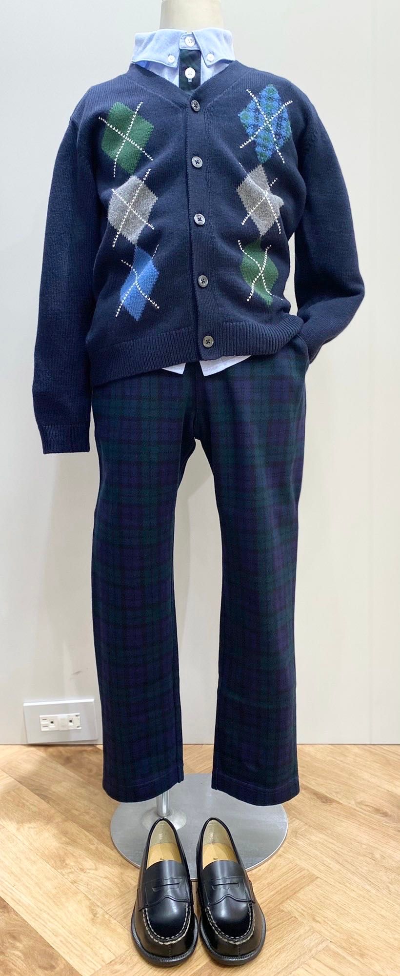 カーディガン+ファミリアチェックの組み合わせで一気にお出かけスタイルに。クリスマスやお正月のお出かけにもぴったりですね!