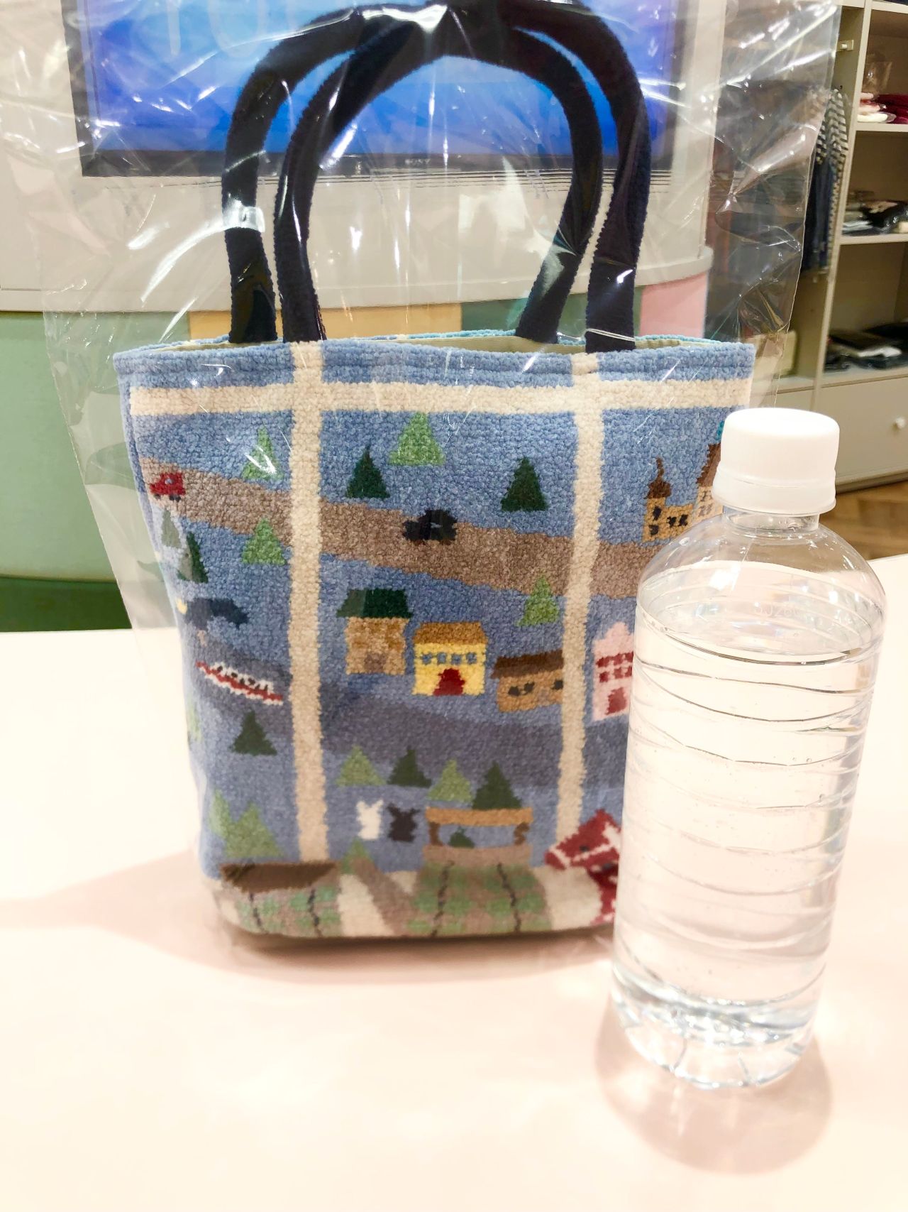 柔らかな風合いと、プレゼントやリースを運ぶ女の子とくまのアートがクリスマス気分を高めてくれますね