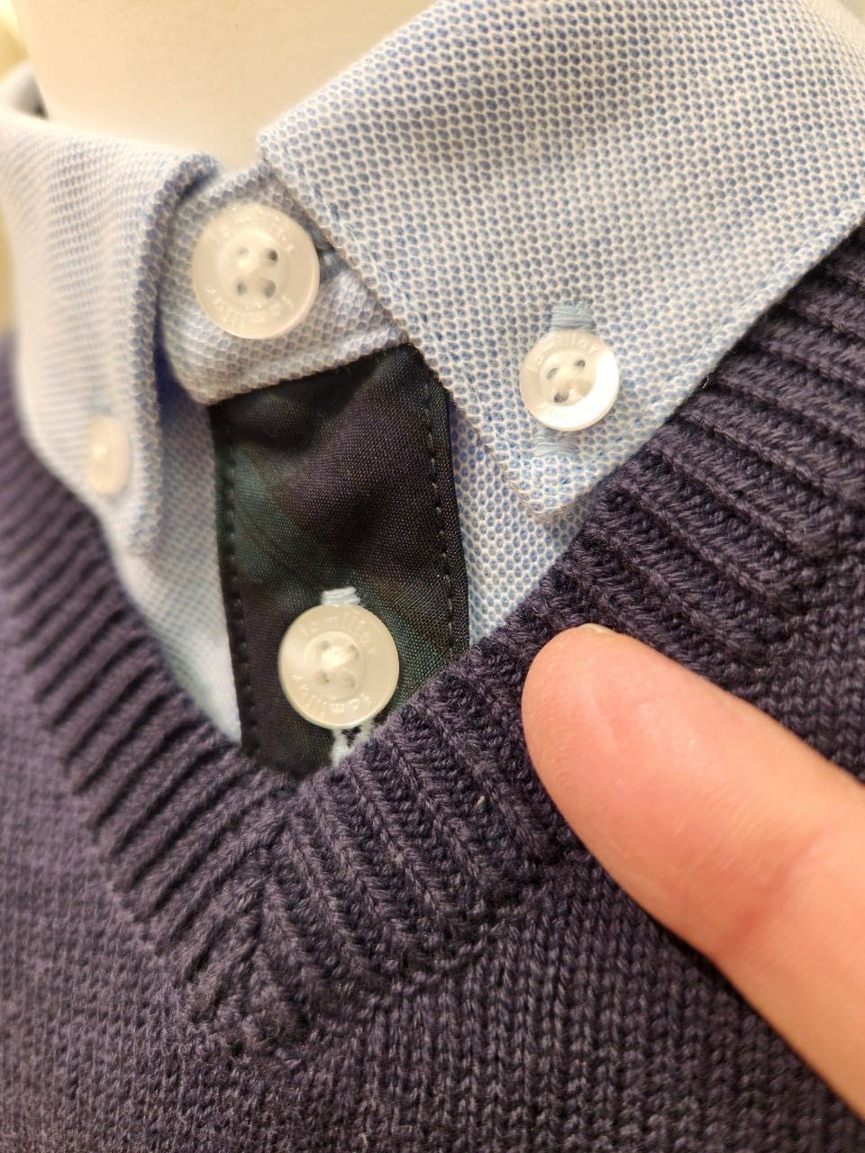 トレーナーの中に合わせると、きちんと感も出ますし防寒にもなります!