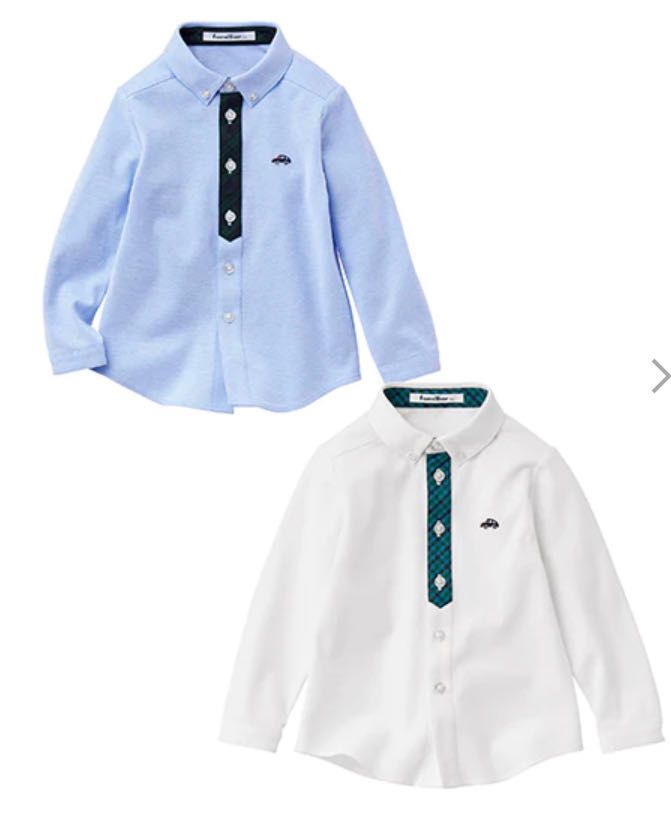 シャツのボタン部分がチェック柄なので、蝶ネクタイなどを付けなくてもアクセントになります